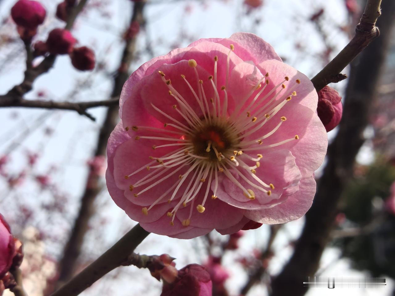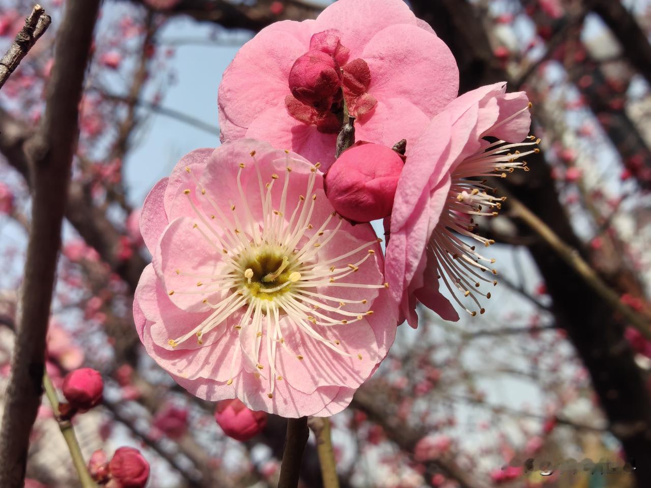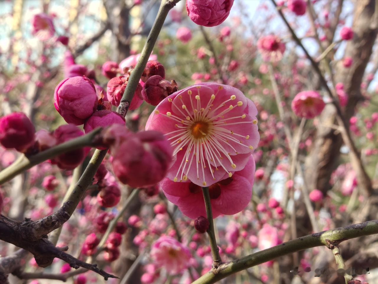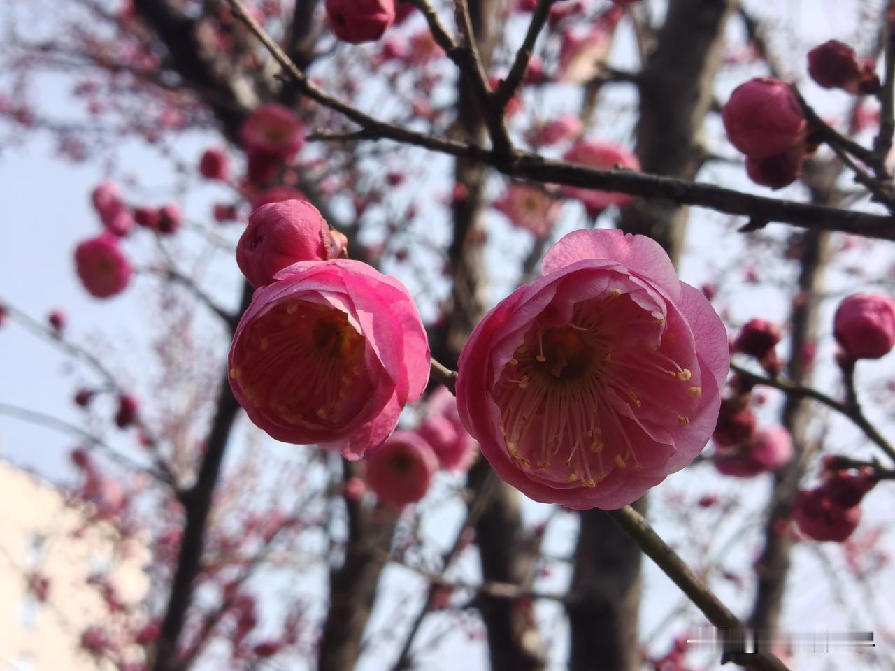 出门去买菜,半路上一树红梅已开了!春天要来了吗? 可是明天才立春呢!今年的天气冷了又热,热了又冷,气温起起伏伏,总的来说是暖冬。 中小学昨天才开始大考,寒假还没开始呢!但日子一天天向前,距离过年也越来越近了。 在一大片萧索中,这一树红梅红艳艳的,太让人欣喜啦!友友,这寒冬腊月的,你们那里有什么花开了没?