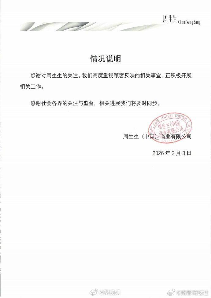 而对于饰品含金量的质疑,该店铺客服则回应称,“周生生的足金饰品符合国家标准《首饰贵金属纯度的规定及命名方法》,足金首饰含金量不低于千分之990纯度,并以‘足金’印记标示。”(记者 王蕾娜)