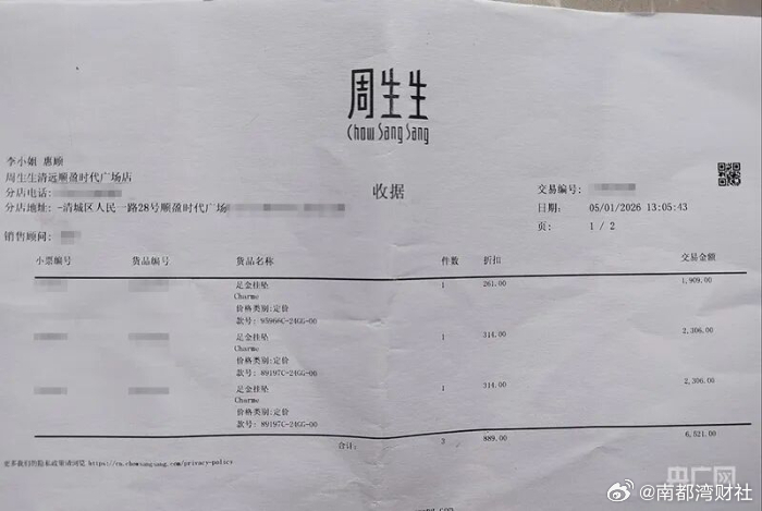 值得注意的是,2月3日,南都湾财社记者搜索周生生官方旗舰店发现,涉事的足金福袋挂坠(款号:89197C-24GG-00)仍在正常售卖,折后售价为2304元,已售超3000件。商品详情页面显示,该款足金福袋吊坠材质为足金,重量约1.1克。