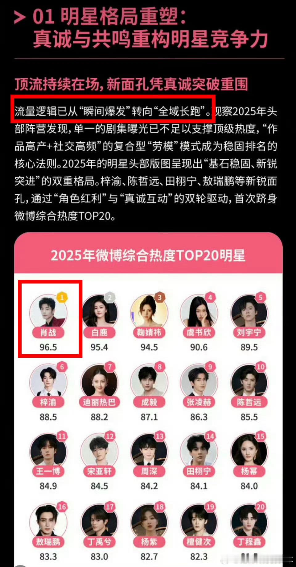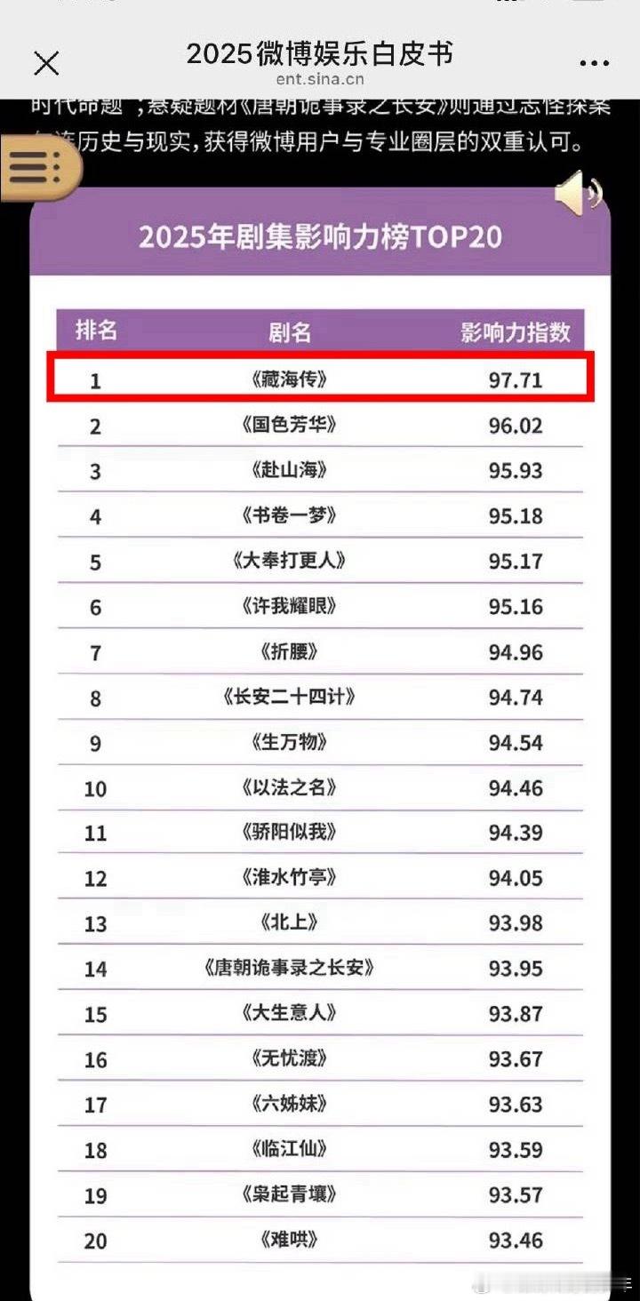 肖战2025微博综合热度TOP1微博娱乐白皮书发的。2025明星格局无限定词第一肖战。2025商业价值无限定词第一肖战。2025剧集影响力、剧集讨论量、剧集传播度无限定词第一藏海传。 从19年到26年内娱断层top1的位置依然是肖战啊🔥 2025微博剧集影响力top20 肖战2025微博综合热度top1