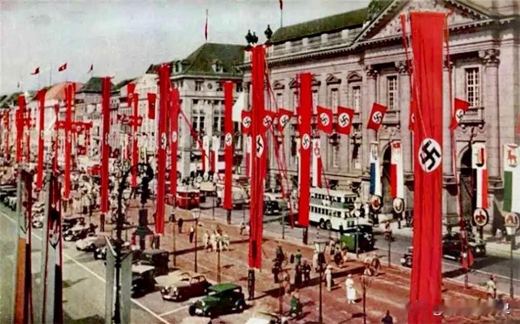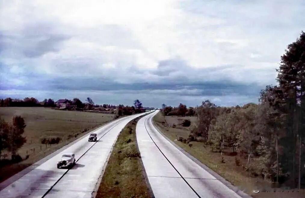 1938年的德国。城市中高楼耸立,街道上车流穿梭,高速公路系统发达。柏林作为当时世界四大都市之一,与巴黎、纽约、伦敦齐名。 历史 历史老照片 二战 德国