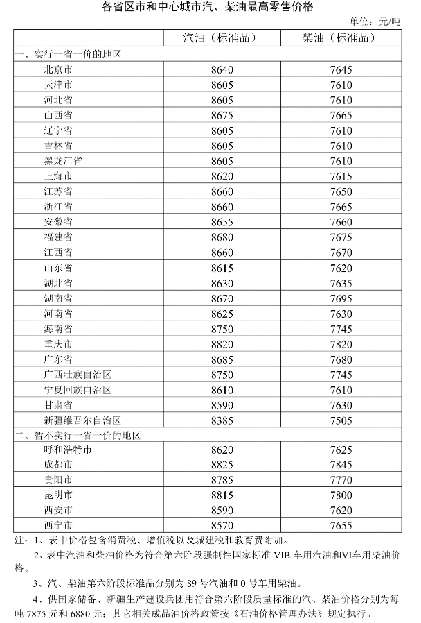 新华财经北京2月3日电国家发展改革委发布消息,近期国际市场油价波动上升,根据2月3日的前10个工作日平均价格与上次调价前10个工作日平均价格对比情况,按照现行成品油价格机制,自2月3日24时起,国内汽、柴油价格(标准品,下同)每吨分别上涨205元和195元。调整后,各省(区、市)和中心城市汽、柴油最高零售价格见附表。