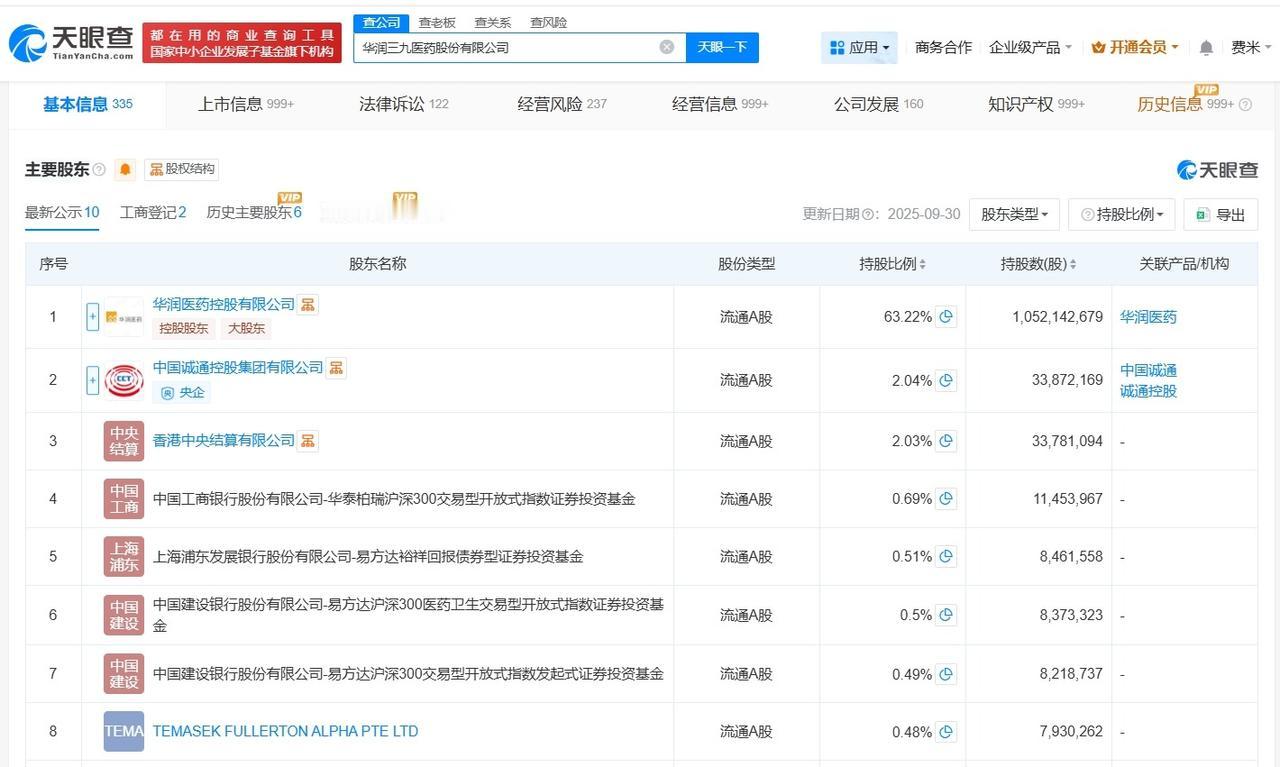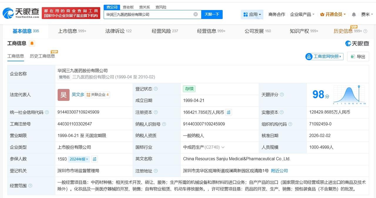 华润三九增资至16.6亿增幅约30% 天眼查App显示,近日,华润三九发生工商变更,注册资本由约12.8亿人民币增至约16.6亿人民币,增幅约30%。 华润三九医药股份有限公司成立于1999年4月,法定代表人为吴文多,经营范围包括中药材种植、生产所需的机械设备和原材料的进口业务、自产产品的出口等,由华润医药控股有限公司、中国诚通控股集团有限公司、香港中央结算有限公司等共同持股。 天眼查信息: