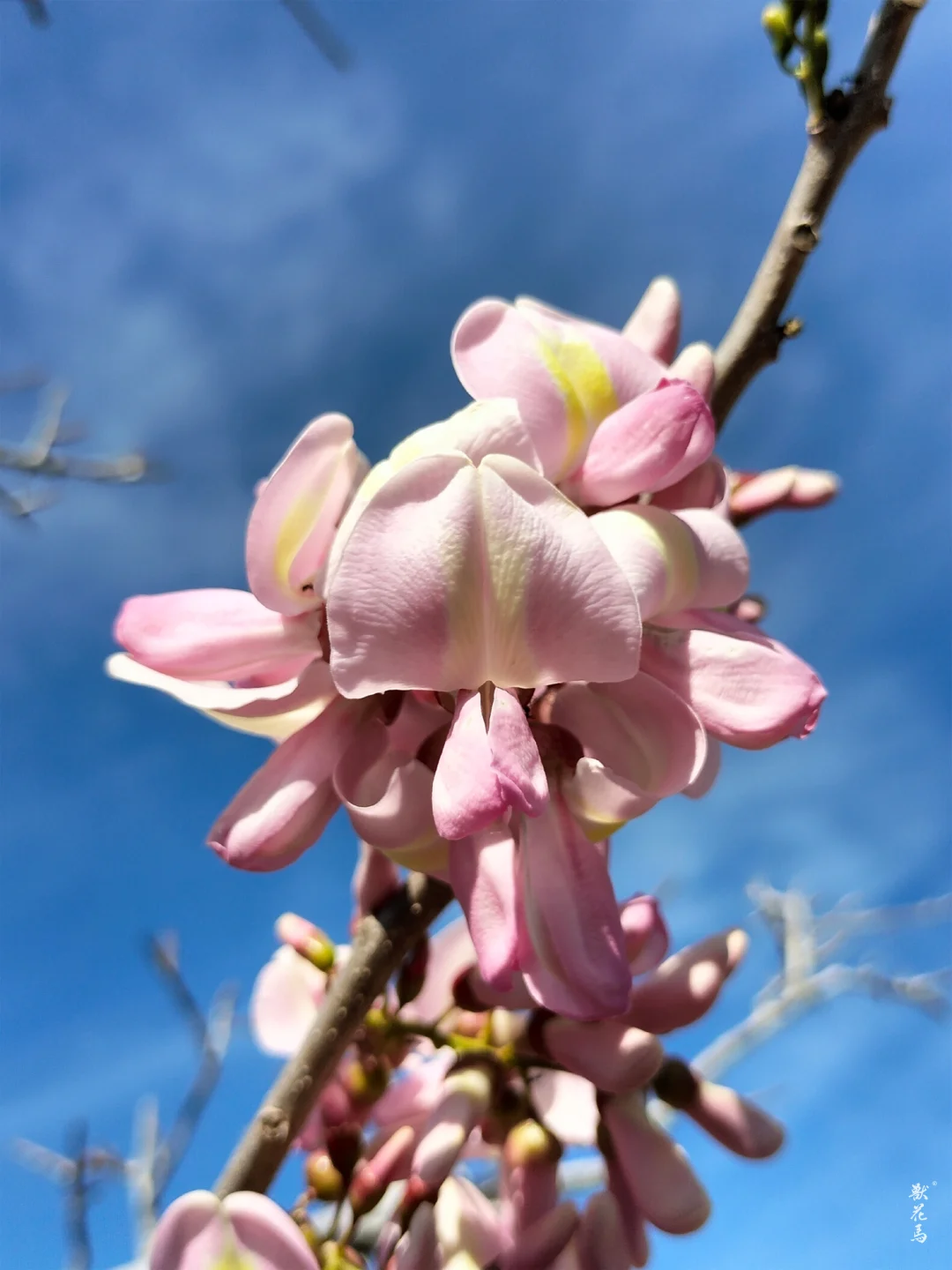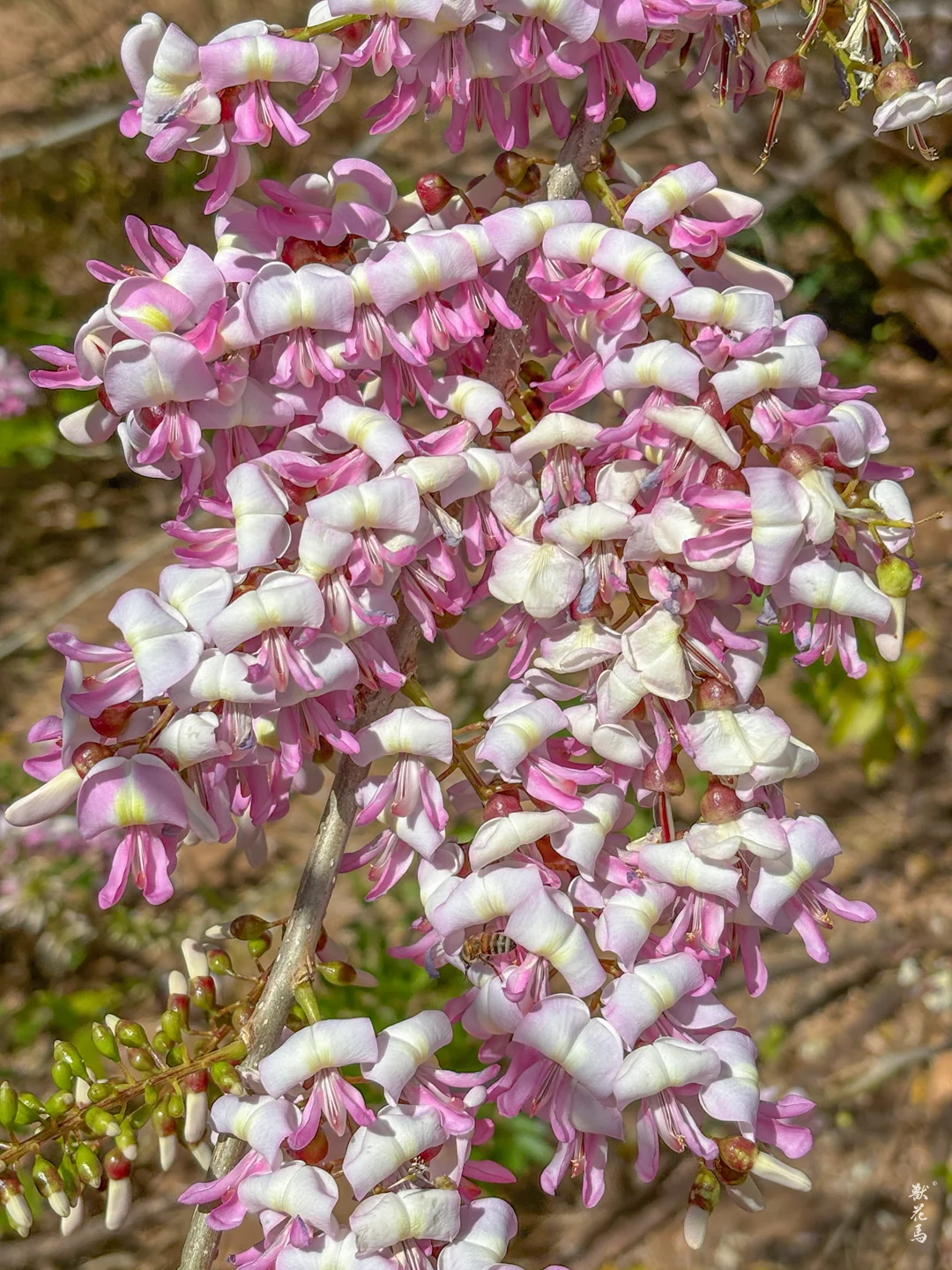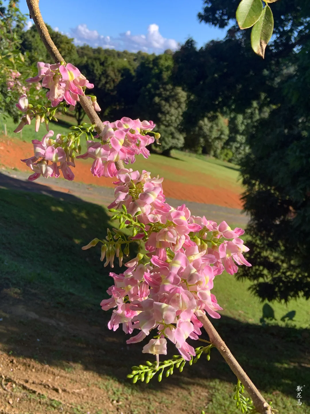 ✨ 羽状复叶青翠茂密,总状花序绽放大片粉红色花朵,如蝶舞枝头