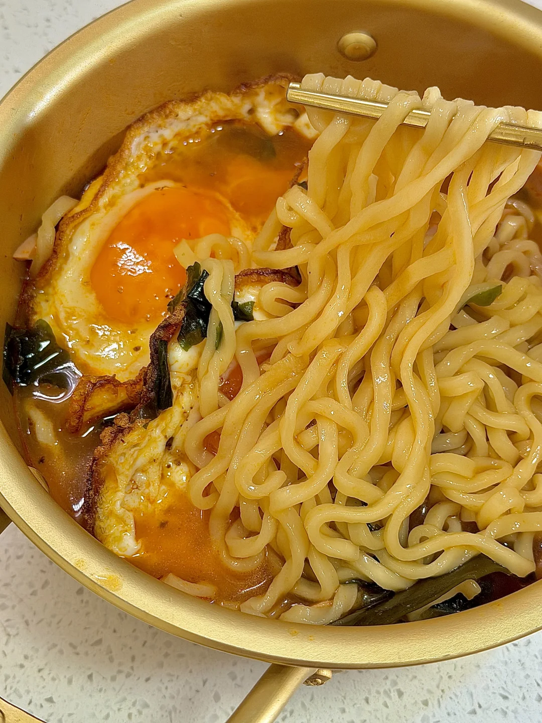 今日份快乐分享: 煮方便面🍜 . 食材:泡面 火腿肠 鸡蛋 自己想怎么煮都可以,哈哈 . 又老了一岁了,那就祝自己年轻 祝自己快乐 新的一年好运连连 都顺利呀~ 谢谢宝宝们的陪伴