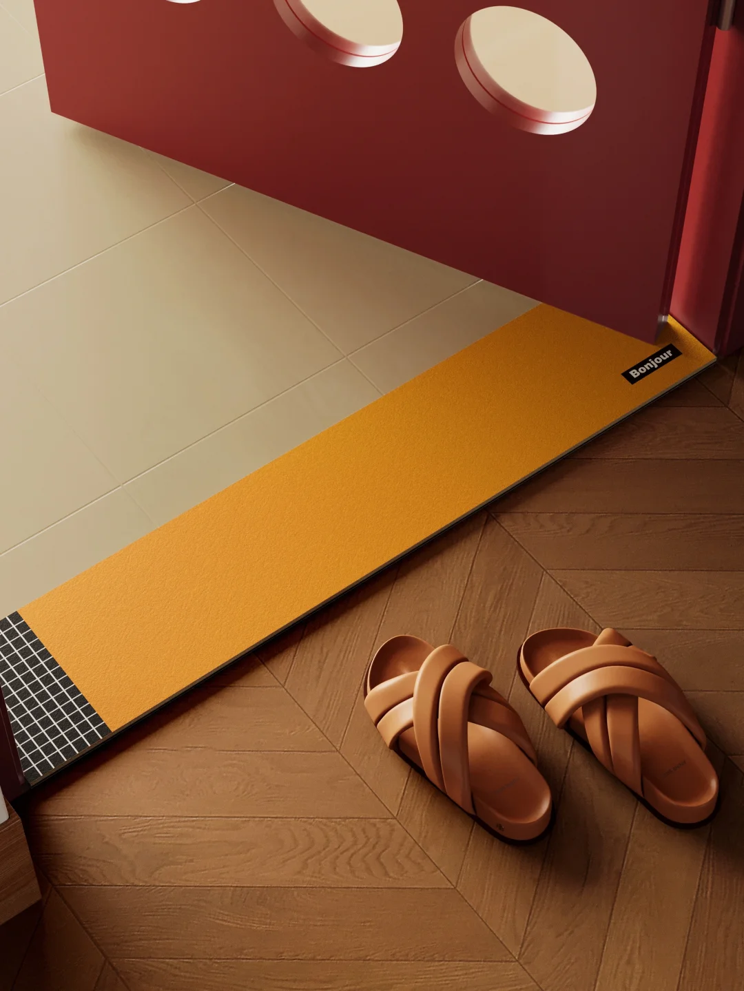 一低头,高饱和克莱因蓝块像从蒙德里安画布上裁下来的 撞着极简线条勾出的几何韵律 包豪斯风里瞬间蹦出鲜活能量✨ 老土门槛石一垫,直接蜕成艺术感 C 位! - 加厚耐刮材质好打理 踩上去防滑静音纹丝不动 软弹脚感秒吸水渍, 实用和时髦全拿捏~ 家的摩登质感,就藏在这抹撞色里!