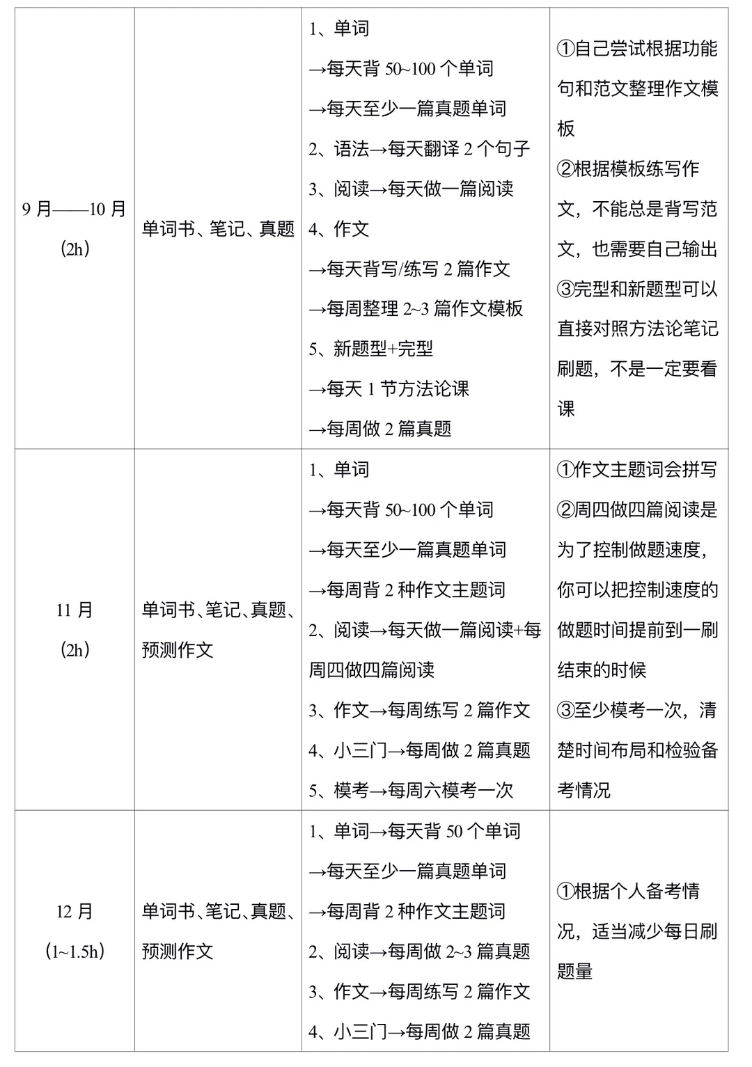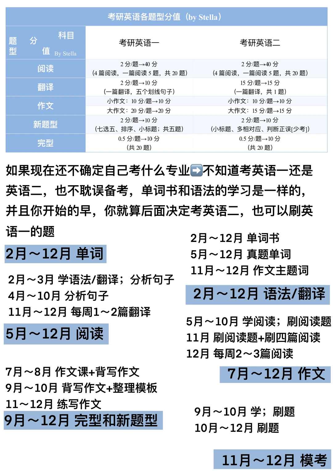 主要说一下考研英语的全年规划(2月—12月),大家可以参考制定自己的备考规划↓