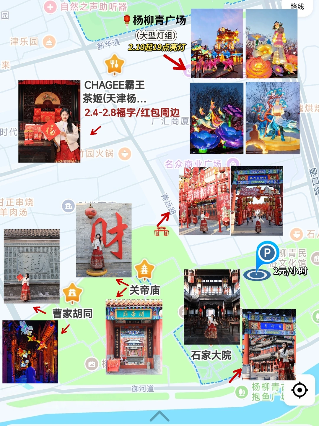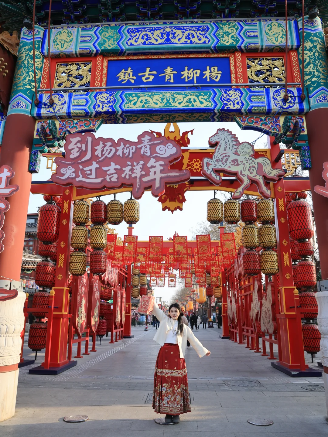 天津有年味的地方🏮 不止古文化街,还有杨柳青古镇‼️ 马年新皮肤已经上线了🆕 白天逛古镇看表演,晚上赏花灯 全部都是免费的,可以玩一天 🏮灯会 📆小年2.10-元宵节 📍杨柳青广场/古镇商业街/御河道 🌅白天路线 杨柳青牌坊-石家大院-关帝庙-百福墙-曹家胡同 🏙️晚上路线 杨柳青广场-如意大街-年画里--御河桥 冬日citywalk离不开暖冬热饮 天⻢驰骋,骐骥乘⻛ 我的出行好搭子霸王茶姬又出新品了 新皮肤灵感来源于敦煌壁画中的“天⻢” ⾜踏⻜云,御⻛⽽⾏ 颇有东⽅哲学⾥的⾃由与⽓韵 两款新品都是以⼤红袍为茶底 独特的岩骨花香,自古被视为皇室贡品 在重要的节日,代表了文化传承与家族仪式感 ▪ ⽩雾红尘 ⼤红袍岩韵醇厚,层次分明,余韵悠长 ▪ ⾁桂橙⼤红袍 果味清爽,热饮有热红酒的⻛味 ⽩雾红尘(⼤)+红包套装或福字⻔贴 =22 ⾁桂橙⼤红袍(中)+红包套装或福字⻔贴 =16 2026.2.4起上线(数量有限,赠完即⽌)