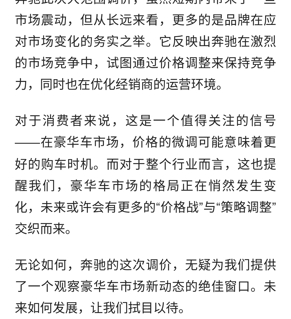 奔驰突然大范围调价,背后到底藏着什么玄机?