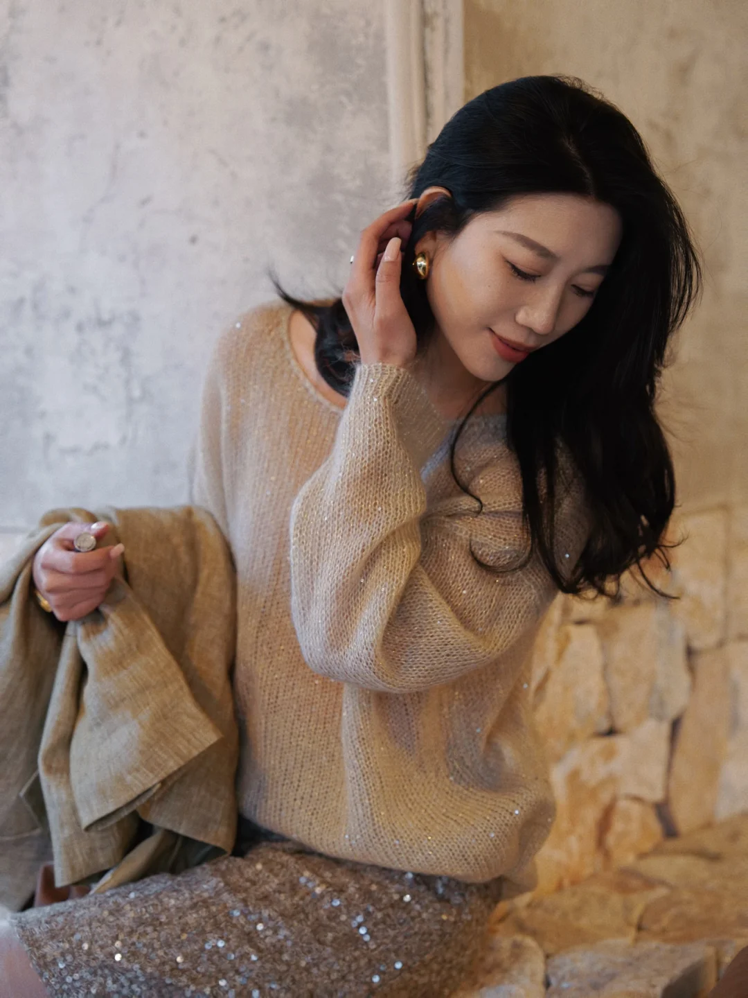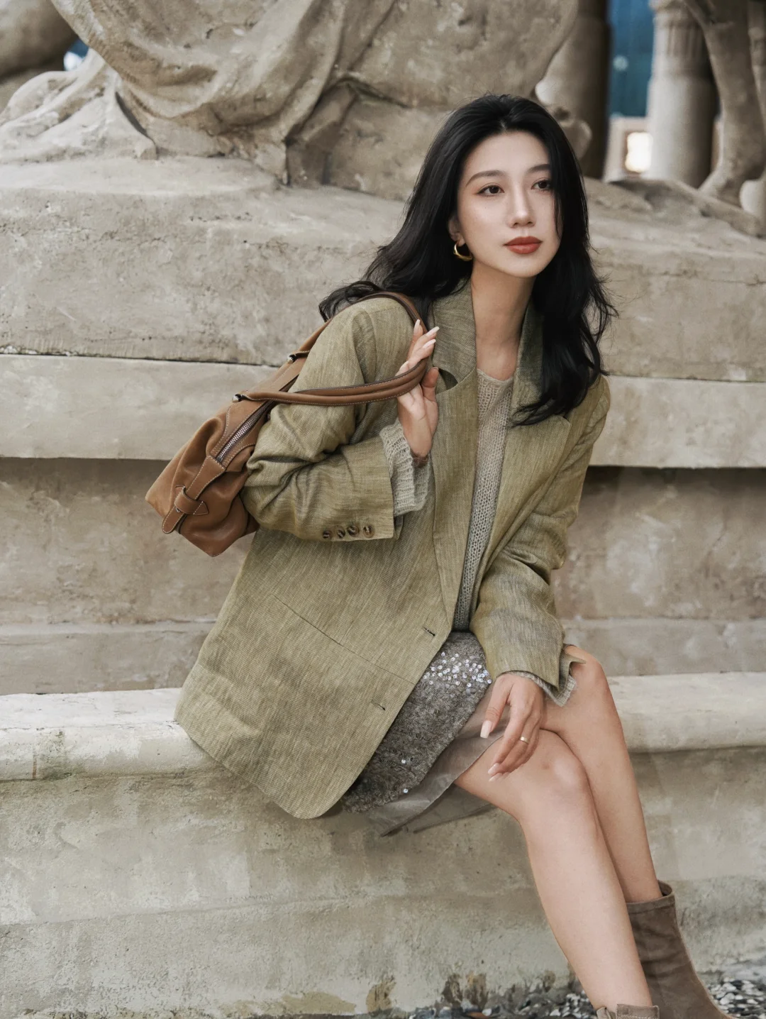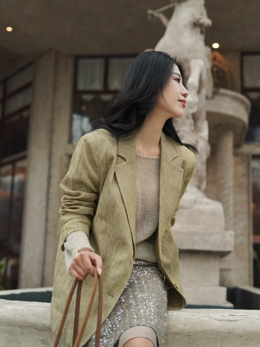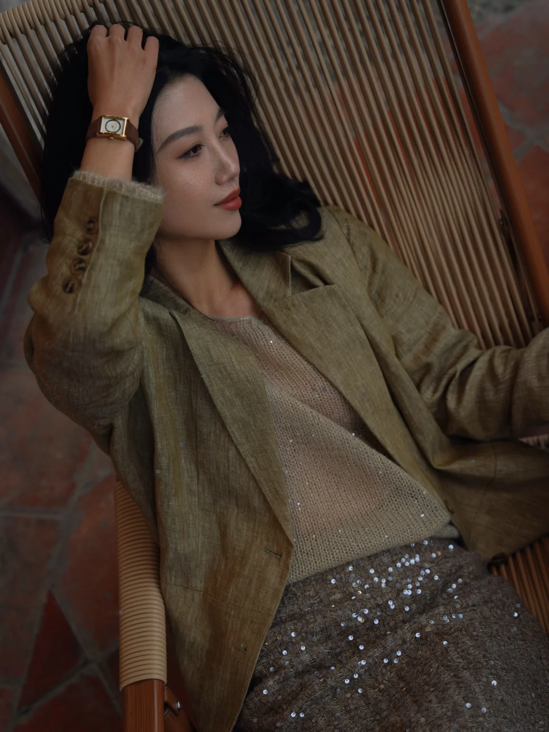 在我的穿衣喜好中,偏爱大抵是给了西装,有时我觉得西装是我的铠甲。 曾经在父亲的衣橱里拿出了老式西装穿着玩,那时大概就是我与西装的缘份开始,到后来长大成年、工作职场中,我不再像女孩时期只爱裙子,开始真正爱上了西装,喜欢它没有性别的包容,喜欢它克制干练的魅力,喜欢它刚柔并济的利落。 后来拥有了很多不同材质不同版型的西装,它始终是我衣橱里偏爱的单品。陪伴我在不同场合,应对游刃有余。 亚麻西装的松弛和随性,针织的轻柔舒适,亮片半裙又给予适当的点缀。 我们把西装搭配出好多样式,得体,但不紧绷。时髦但不出位。如今,我的西装不再只为某个场合待命。它是我性格的切片——可以挺括,可以柔软,可以闪烁微光。