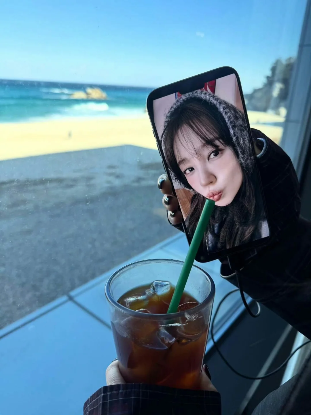 尹恩惠更新,穿搭不错,拍照不错 咖啡还能这样喝,出片小心思有!