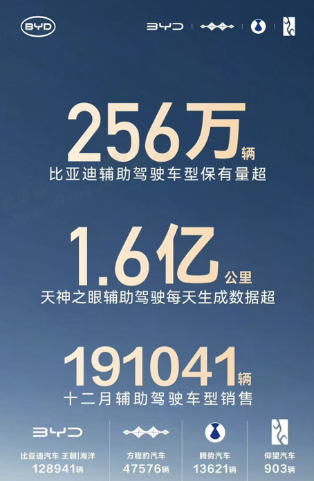 先说国内,王朝、海洋撑住基本盘,秦、元、海豹这些主力车型在各自区间几乎没有真空期;同时腾势、仰望、方程豹把价格带往上顶,结构在变,天花板也在抬。再看海外,破百万不是数字好看,而是节奏对了。119 个国家、核心市场持续放量,说明已经实现了「出口中国车」➡️「本地卖新能源」的转变,这一步,比销量更重要。还有一个经常被低估的点——智驾。256 万台保有量、极高的激活率,说明用户不是被迫用,而是真敢用、常在用。AEB、泊车兜底这些细节,才是销量背后的安全感来源。