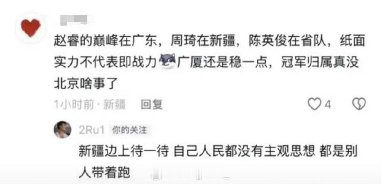 昨日赵睿打完CBA在网上回怼网友,居然直接开喷地域,还回怼新疆网友“打馕去吧”。