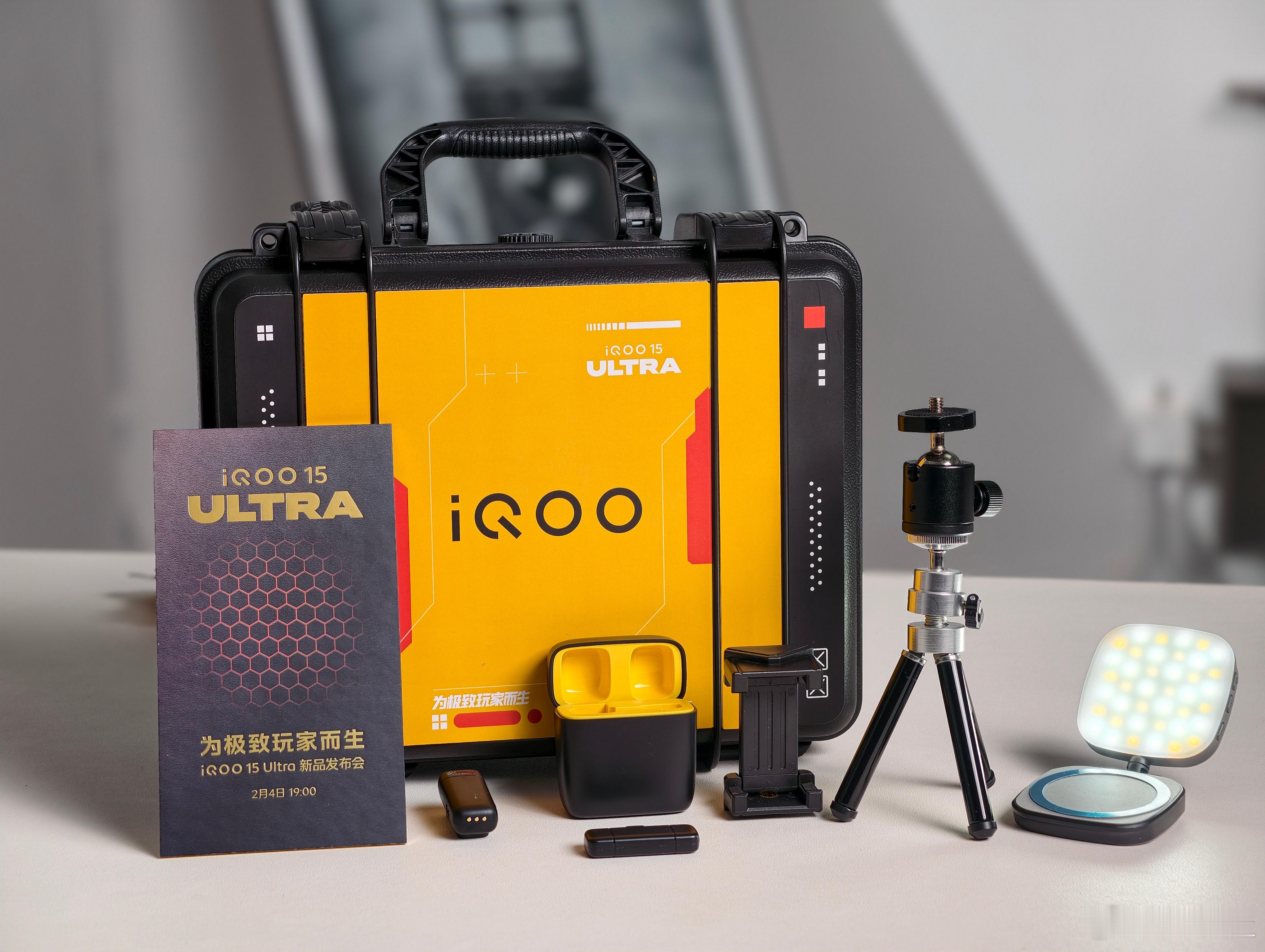 iQOO 15 Ultra不愧是为极致玩家而生的,邀请函都这么硬核,而且还都是三脚架、麦克风、补光灯这些媒体们经常用到的东西