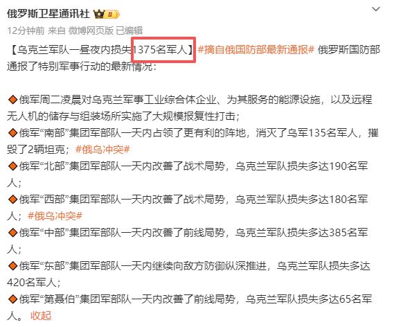 俄乌冲突最新兵力损失战报: 俄方宣称,乌军一天之内损失了1375名士兵。 乌方宣称,俄军一天之内损失了760名士兵。 抛开双方提供数据的真实性原则不说,但从这个数据来看,双方兵力加起来共有2035人,细思极恐,一天时间,2035条人命就这样没了,前一天还活蹦乱跳的,一天之后,都一动不动了。须知,这不仅是2035人的消逝,背后还连着2035个社会家庭。 他们的年幼的孩子怎么办,年迈的父母怎么办?新婚妻子怎么办?这些都是一系列的社会问题。