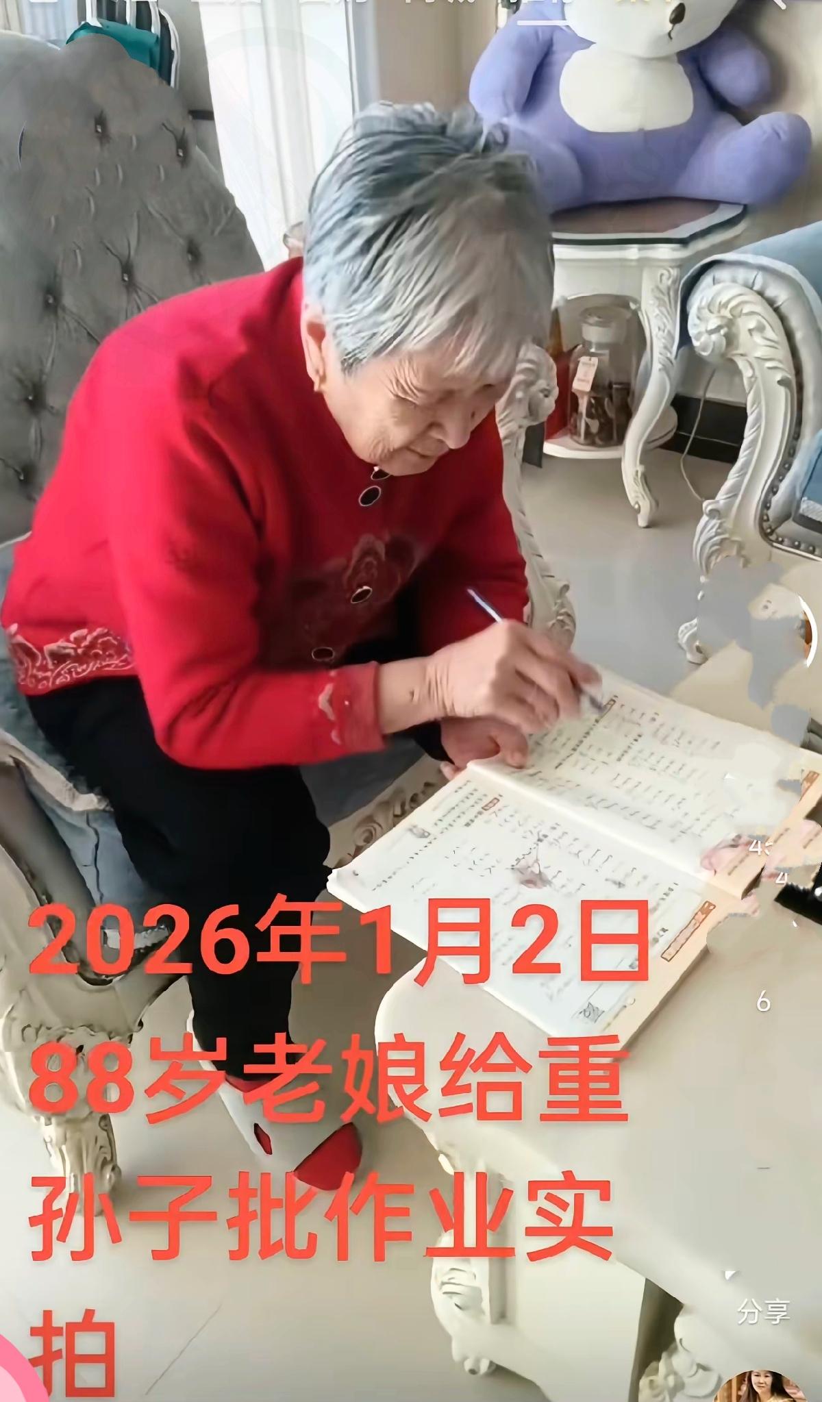 88岁的老人,眼不花耳不聋,每天给重孙子检查作业。 她女儿说,每天有妈妈陪伴,是最幸福的的事[比心][比心][比心]