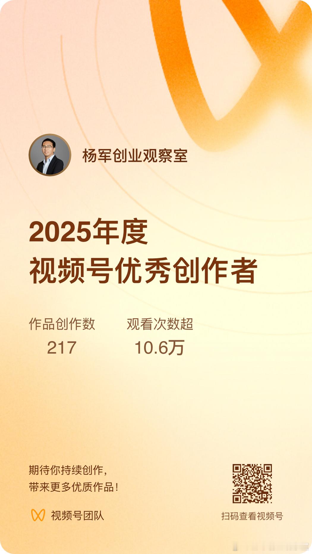 今天收到“ 2025年度优秀创作者”证书,是鼓励,更是鞭策。从0到10万+的观看,每一步都因你们而坚实。