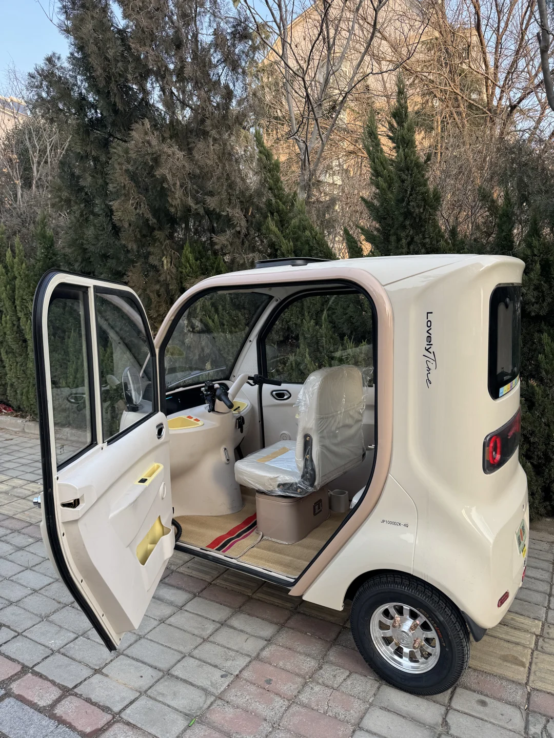 圆润车身配奶fufu配色,贴满可爱贴纸直接戳中少女心,别看颜值软萌,内部空间超惊喜,轻松坐多人还能全舱遮风挡雨,后斗随手载物超实用~