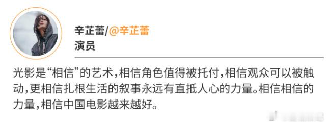 辛芷蕾连写7个相信 相信扎根生活的叙事,相信直抵人心的力量,和辛芷蕾一起期待更好的中国电影。