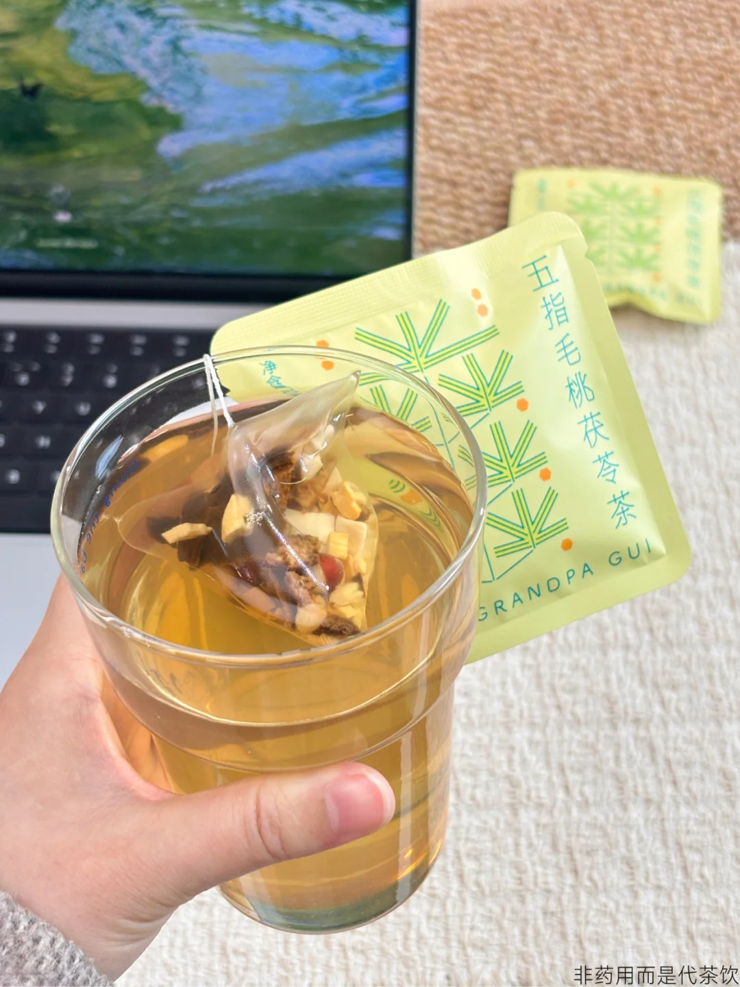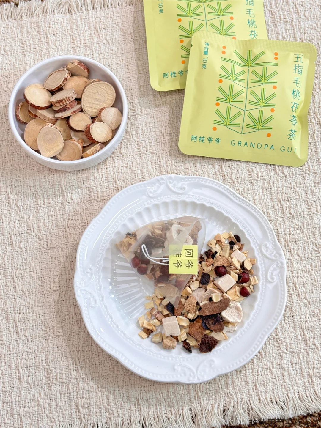 茶包在四神汤(茯苓、芡实、莲子、山药)的食材基础上,加入了被称为“正气将军”的五指毛桃和陈皮,温和养护脾胃。