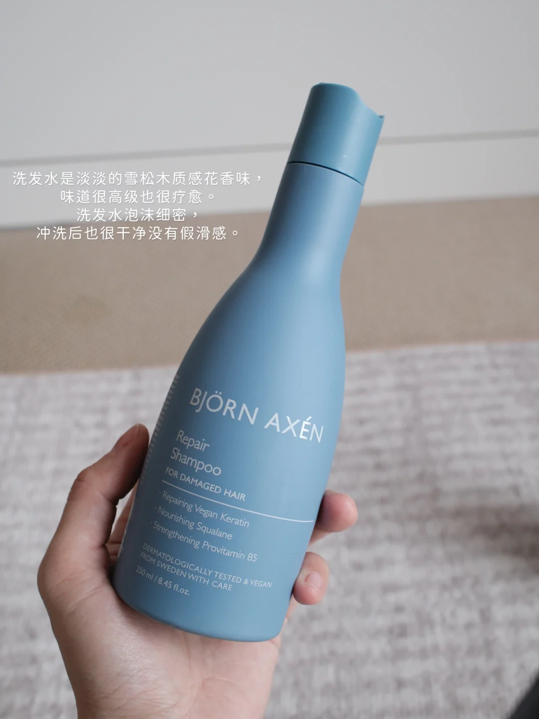 👉🏻最后说说效果:用完头发软软顺顺,但头顶又不塌!很难得遇到一款营养足够但头顶不塌的,兼顾顺滑+蓬松!洗完头发亮亮的,还有那种淡淡的木质花香味,有一次洗完头出门完全没喷香水,姐妹说好好闻还问我是哪款香水。瓶身设计也很北欧极简风,摆在浴室颜值也很高。