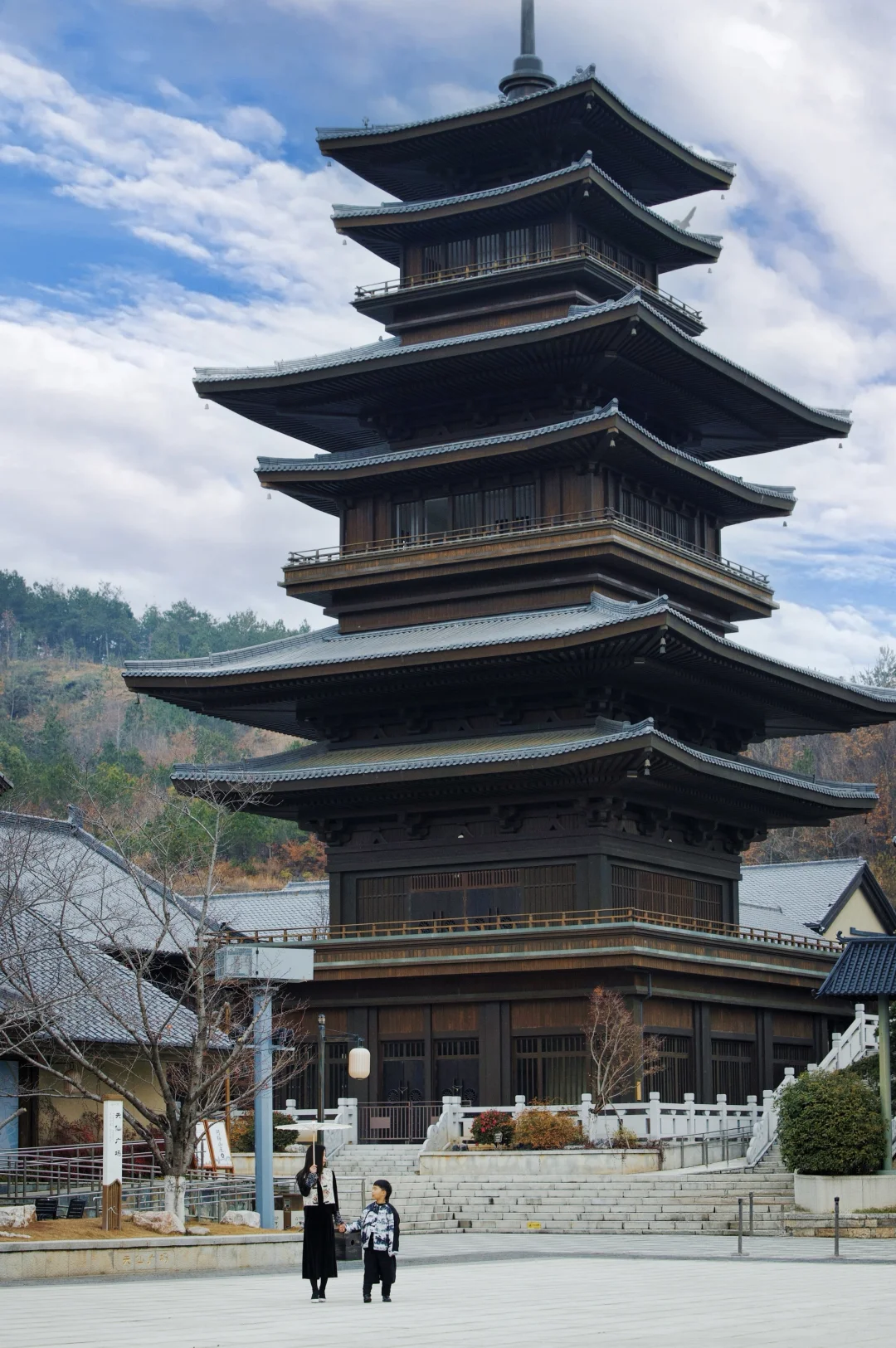 ① 九曲桥中段——与古塔同框