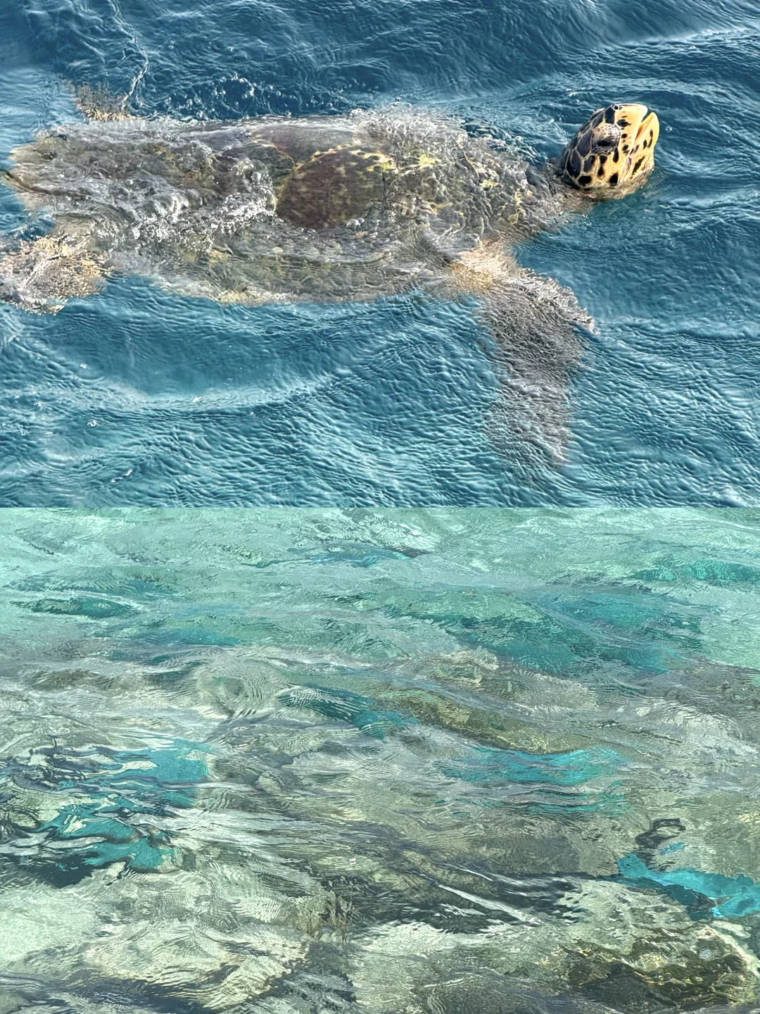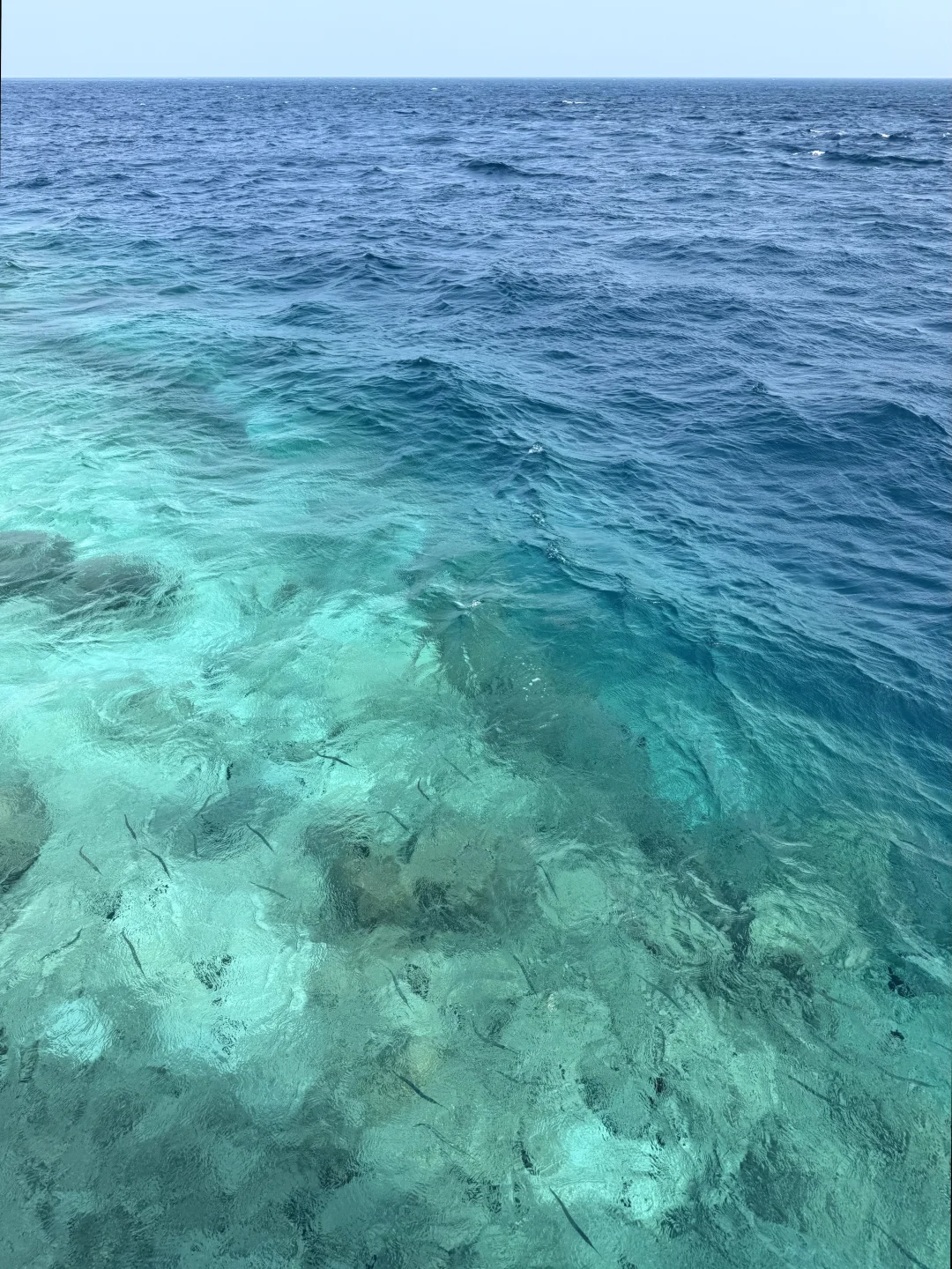 有经验👉长桥走到头跳水 直接是海沟 鱼巨多!柱子周围黑鱼风暴 鲨鱼不时经过 早上大概率有海龟(不敢跳可从比基尼贴左边游过去很近)