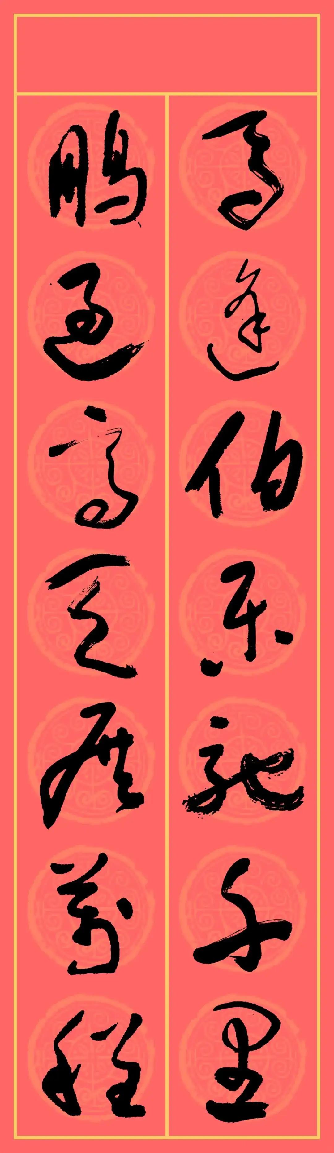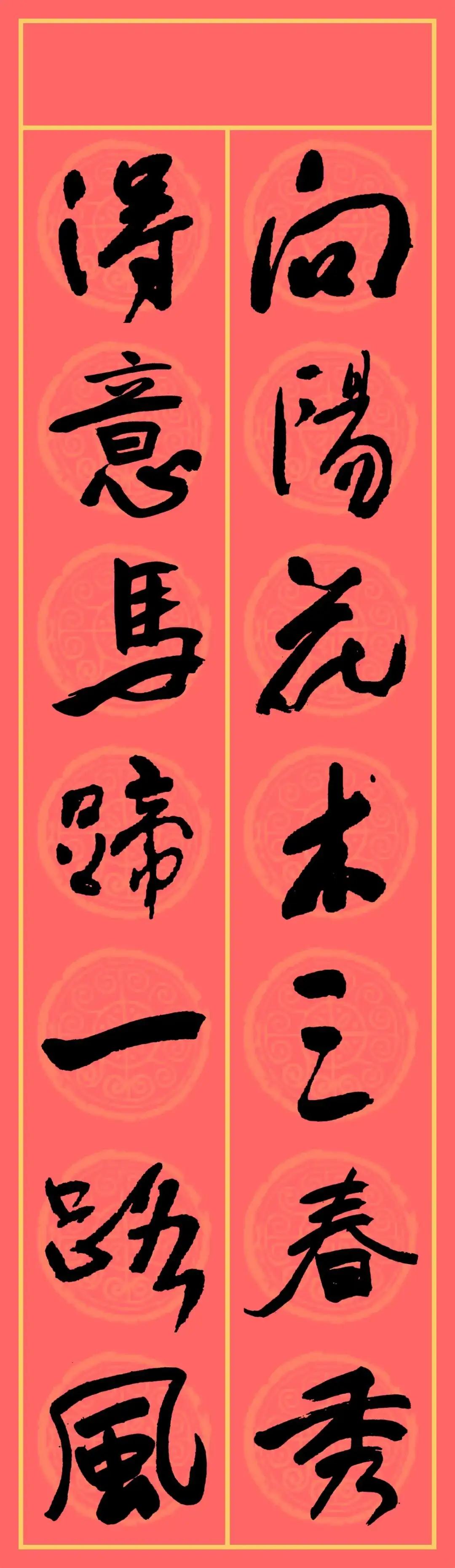 当代草圣于右任草书集字联欣赏。想贴春联的,可以直接临写使用,副副对联带马字,就是为马年而设计!这样的春联,您喜欢吗?