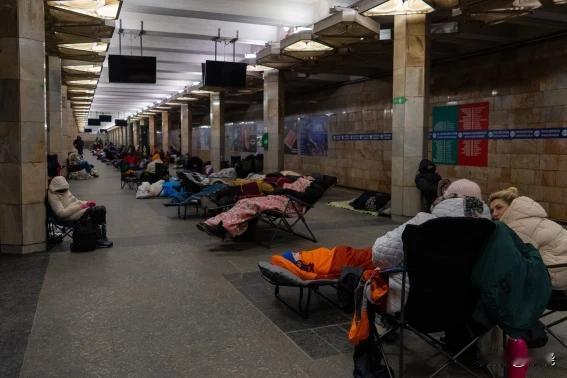 2026年2月3日,星期二,乌克兰基辅,人们在地铁站避难,地铁站被用作防空洞。 俄罗斯在一夜之间向乌克兰发动了大约450架远程无人机和70枚各种类型的导弹。 泽连斯基说,对乌克兰至少5个地区的轰炸专门针对电网,这是莫斯科在多年来最寒冷的冬天拒绝让乌克兰平民有照明、供暖和自来水的行动的一部分。轰炸至少10人伤亡。 泽连斯基说:“对俄罗斯来说,利用冬天最寒冷的日子恐吓乌克兰人比外交更重要。”