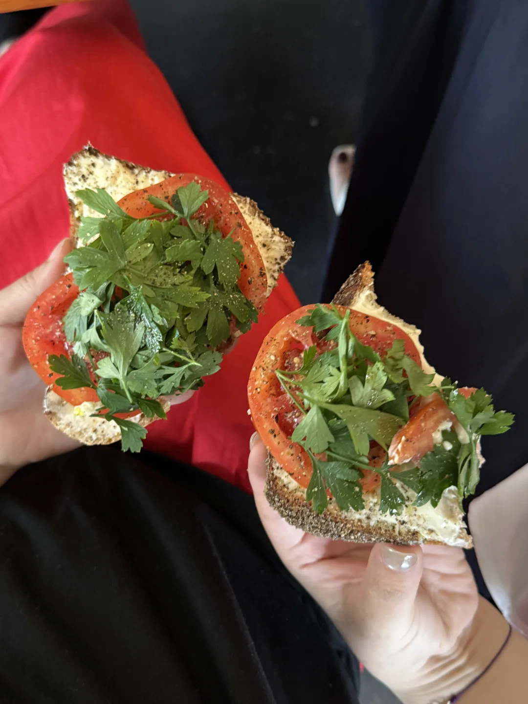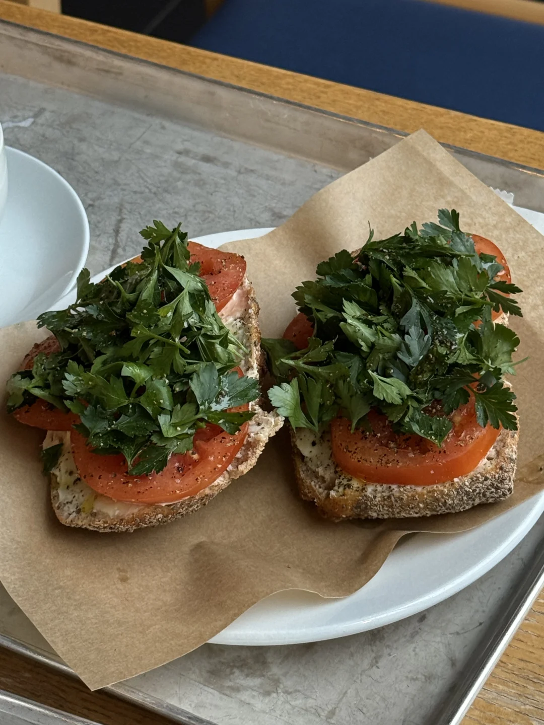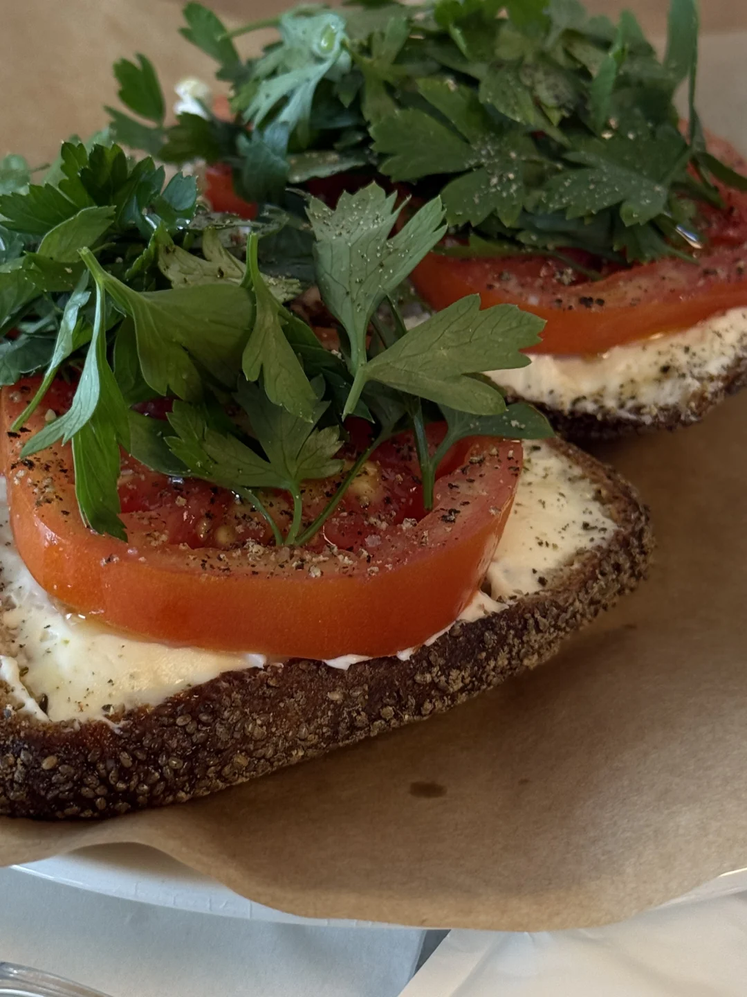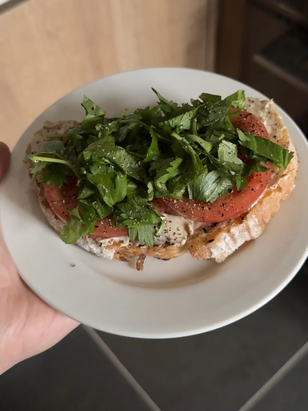 没想过普通番茄和芹菜俩蔬菜能这么搭 首尔Maa 招牌水芹菜三明治 吃了两次 次次惊艳 3个tips: -奶酪用的海盐焦糖 抹厚一些很还原 -西红柿要多多多多胡椒 -选小芹菜 嫩尖叶 味道清淡清香很靠近水芹菜 很简单适合懒人美女 上班族预计三分钟搞定 好ci!!!