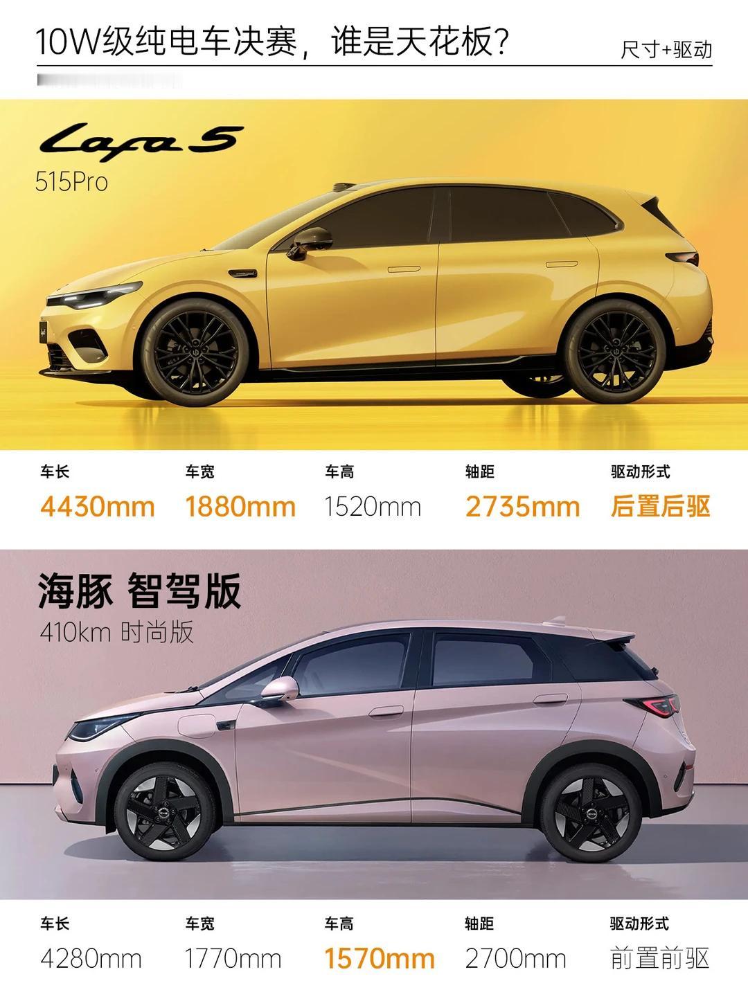 都是10万级,年轻人第一台车选零跑Lafa5还是比亚迪海豚? 对于年轻消费者而言,他们选车的时候在考虑到家用需求的同时还想要一些玩乐属性,在10万级当中,零跑Lafa5和比亚迪海豚都能满足这个要求,而且都是好开、好用且颜值高的车。不过,在实际体验方面,却有着不小差距。 就拿空间来说,零跑Lafa5拥有超高的86%的得房率,轴距为2735mm。比亚迪海豚的轴距为2700mm,它的得房率仅为66.7%,不仅车身尺寸比Lafa5小很多,而且空间利用率也小。从实际的体验来看,零跑Lafa5的第二排腿部空间要大的多,乘坐起来更舒适。 然后再看续航表现,比亚迪海豚续航达到了520km,在同级属于领先的表现,30分钟可以将电量从30%充至80%。零跑Lafa5的表现要更好一些,它仅需要18分钟就可以将电量从30%充至80%。并且零跑Lafa5的续航更好,能给到605km,充满电后比海豚可以多通勤至少3天的时间,在长途出行的时候效率也更高,因为它有着补能和续航的双重优势。 所以,从二者的对比来看,还是零跑Lafa5给到的配置更高,体验更好,因此我也是更加推荐大家看看零跑Lafa5,另外从现在开始,零跑还有新春购车大礼,至高立省1.1万,还有多项终身质保和权益,可以说是更香了,小伙伴们可以到店了解详细的信息,早定车早提车。零跑汽车 造车新势力 比亚迪海豚 零跑Lafa 5