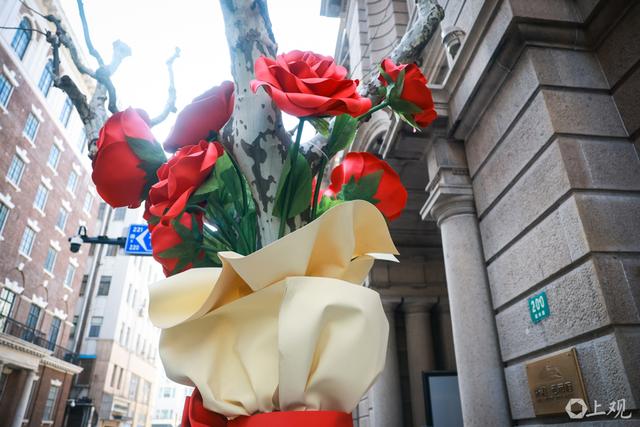 近日,福州路上出现两棵"玫瑰花树"艺术装置,树上娇艳的玫瑰与灯光交织,白天清新浪漫,夜晚唯美梦幻,成为城市一道亮丽风景线。