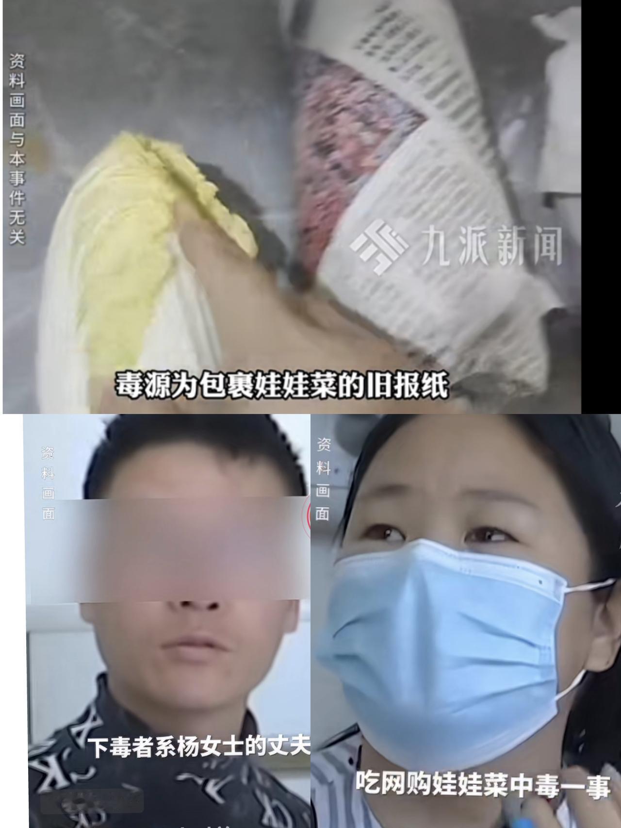 给娃娃菜下毒的居然是杨女士自己的丈夫,明明一起都吃了,双双进了ICU,对方宁愿自己也中毒也要毒死妻子。 电视剧的剧情居然会发生在现实生活中,不过辛亏医术发达,没有让下毒者得逞。 这是有多大的仇恨啊,一开始夫妻两个吃了娃娃菜双双中毒,进了抢救室,杨女士在医院足足治疗了一个多月才平安,杨女士的丈夫中毒较轻,早早出院了,这是自己把控了吃的量了吧! 一开始怀疑是包装娃娃菜的报纸沾染了老鼠药,冤枉了商家,现在破案了,投毒的居然是杨女士的丈夫。 不知道病床上的杨女士知道了真相会如何接受,真是最毒枕边人啊!娃娃菜中毒 食物投毒