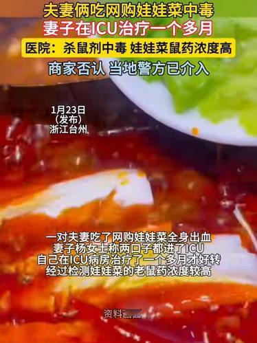夫妻网购娃娃菜竟中毒进ICU,真相竟是丈夫所为?真相背后隐藏了什么? 近日,浙江台州一对夫妻因食用网购娃娃菜中毒,双双住进ICU的事件引起了广泛关注。起初,人们怀疑娃娃菜本身含有杀鼠剂,但随着警方深入调查,真相浮出水面——原来是夫妻中的丈夫所为。1月7日,杨女士和她的丈夫因杀鼠剂中毒被诊断为凝血功能障碍,仍需继续观察。据警方透露,最初锁定的毒源是沾染了杀鼠剂的旧报纸,但由于商家为了降低成本使用这些报纸包装娃娃菜,导致有毒物质渗透污染蔬菜。涉事商家已下架失联,但平台已提供店主信息,警方正在追查全链条责任。直到2月3日,警方进一步调查确认,下毒者正是杨女士的丈夫,他已被采取刑事强制措施。这一反转让公众对食品安全问题再次产生了深深的忧虑。 娃娃菜中毒 娃娃菜药害