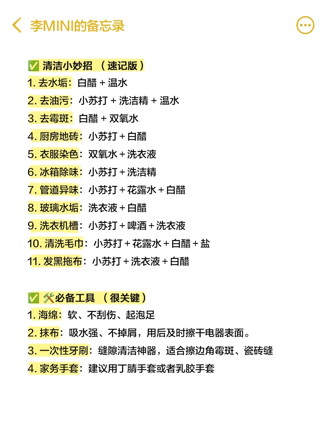 🫧 清洁小妙招(速记版)