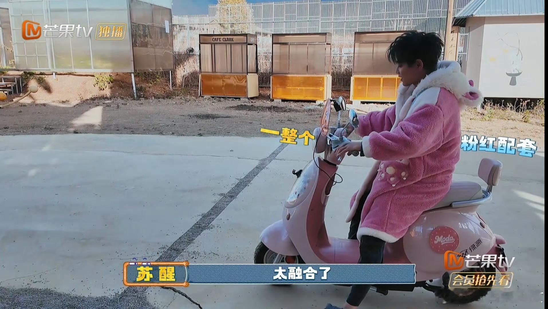 苏醒睡衣虽粉表情够狠粉色毛绒睡衣配粉色电动车,猫猫可爱值拉满!嘴上羡慕亮哥穿搭,实则粉系造型也挡不住霸气,这反差感直接封神~快乐老友记苏醒
