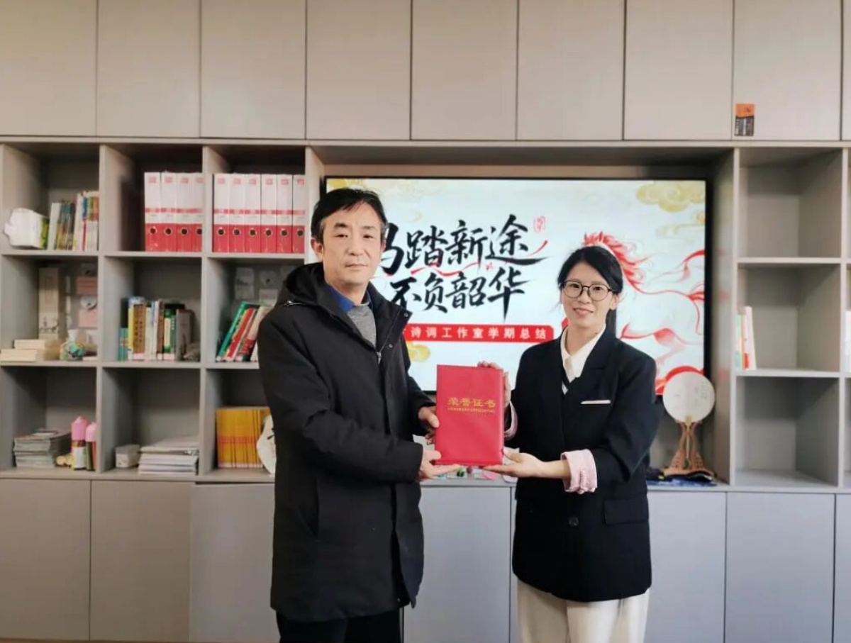 这份荣耀的背后,离不开南阳特校这个温暖的集体。多年来,在吴朝东校长的鼓励支持与南阳特校“乐学善教”教风的浸润下,田新老师始终保持着对诗词的热爱与对教学的热忱。她深耕诗词教学,用简笔画、沙画等生动形式为特殊学生搭建通往诗词世界的桥梁;她坚持读背积累,在墨香诗韵中不断丰盈自我,多次收获省市级优质课一等奖,被评为南阳市名师、河南省学术技术带头人。