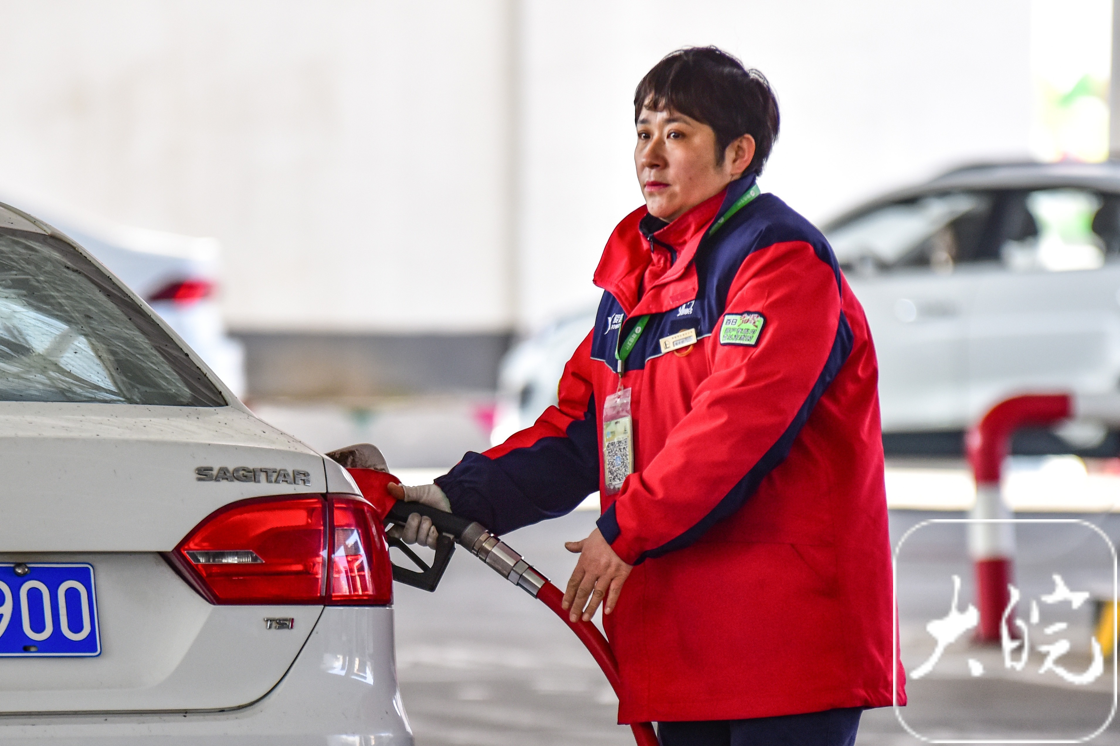大皖新闻讯2月3日,在中石化阜阳市城西加油站,工作人员在给汽车加油。当日24时起,国内汽柴油价格上涨。