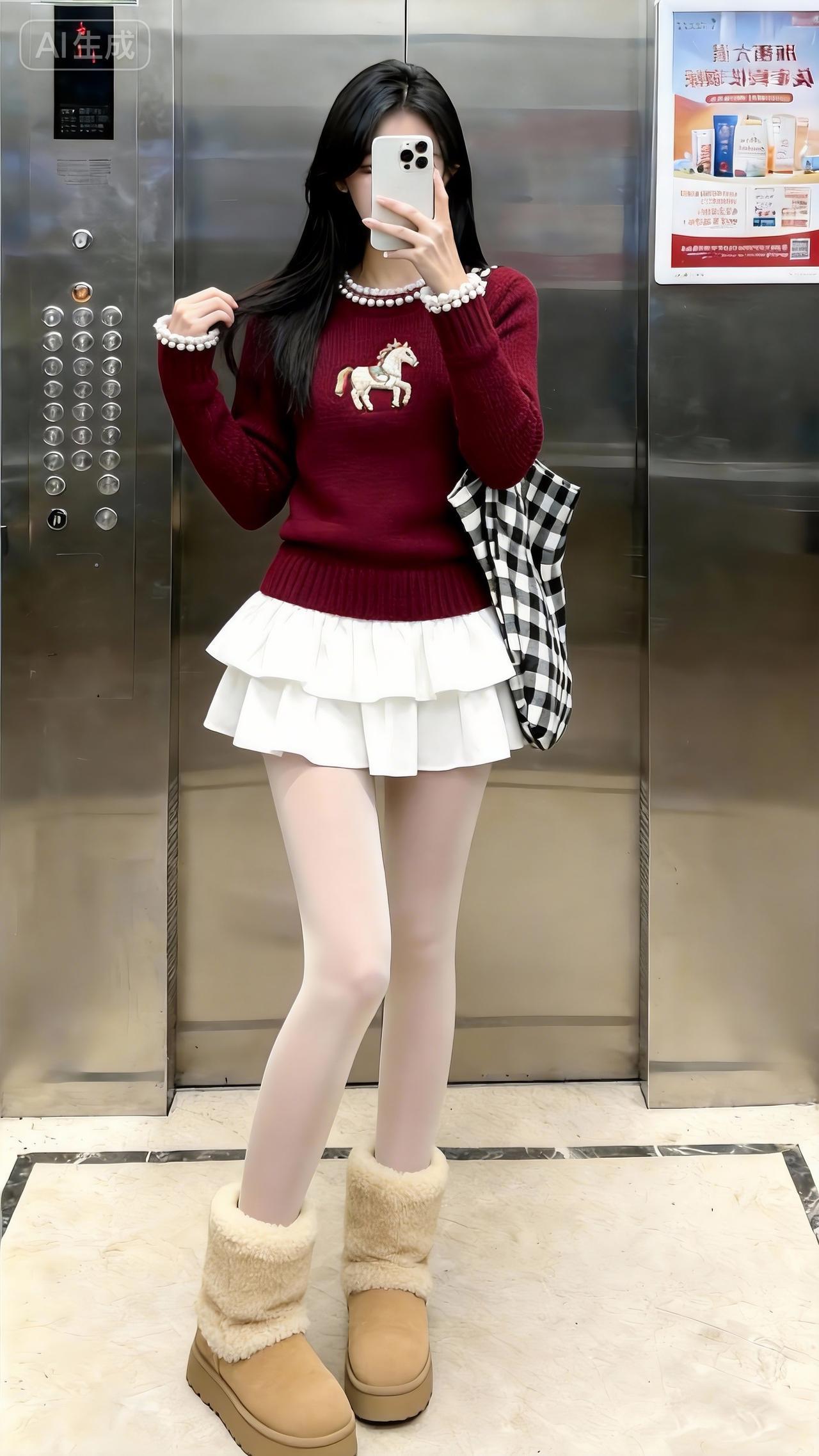 忍不住种草了,酒红毛衣软乎乎还显白,珍珠边+小马刺绣细节感拉满,蛋糕裙自带蓬松感,配光腿神器甜妹感直接焊在身上!厚底雪地靴保暖又增高,这套闭眼抄作业不踩雷~穿搭 冬季氛围感穿搭 光腿神器太好看了 电梯拍照可太出片了