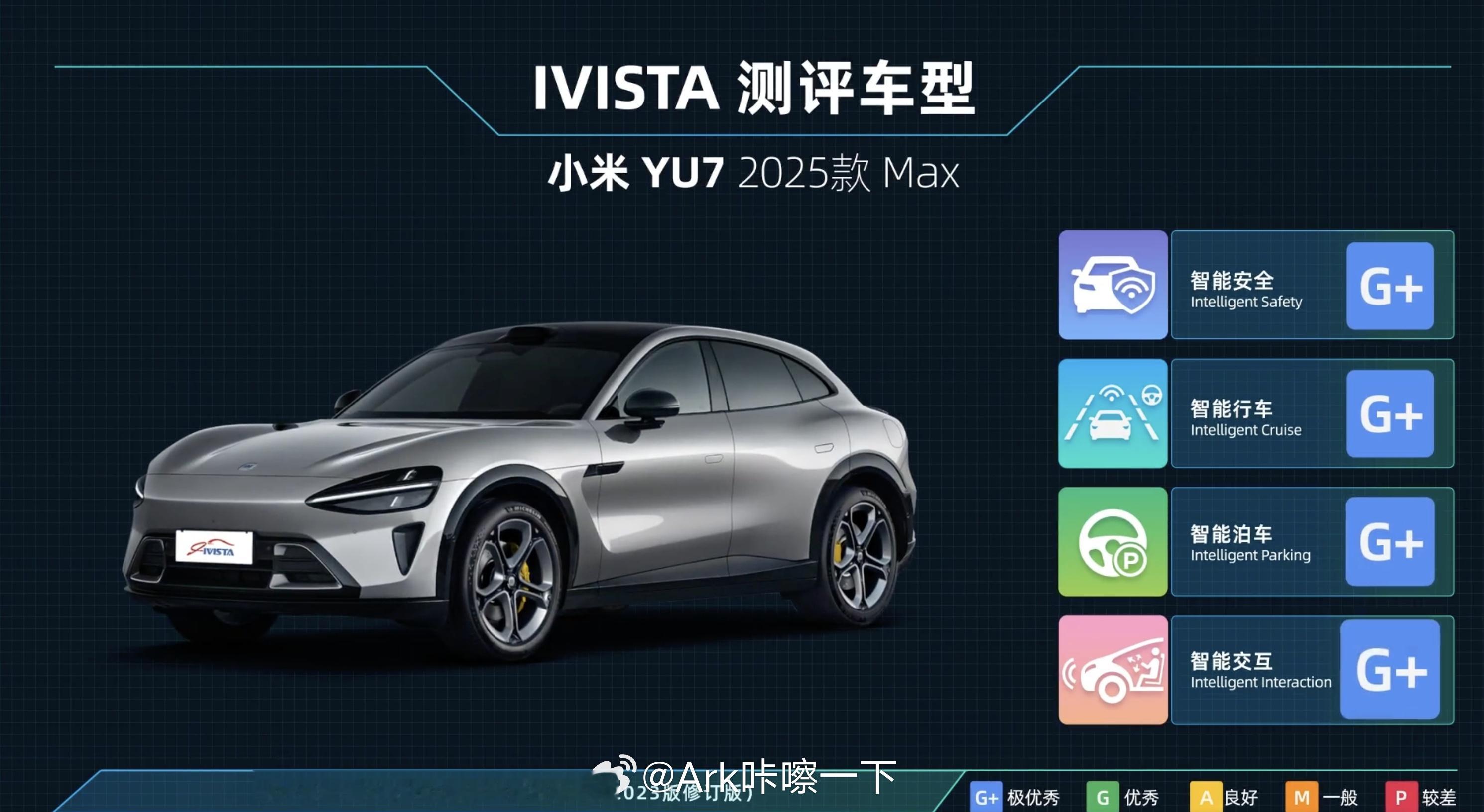 在IVSTA对小米YU7 Max进行多项严苛测试后,小米YU7 Max取得了四个G+级好成绩,分别是智能安全、智能行车、智能泊车以及智能交互,G+就是极优秀的分数,作为汽车行业最新的一员,小米汽车确实成长得很快!