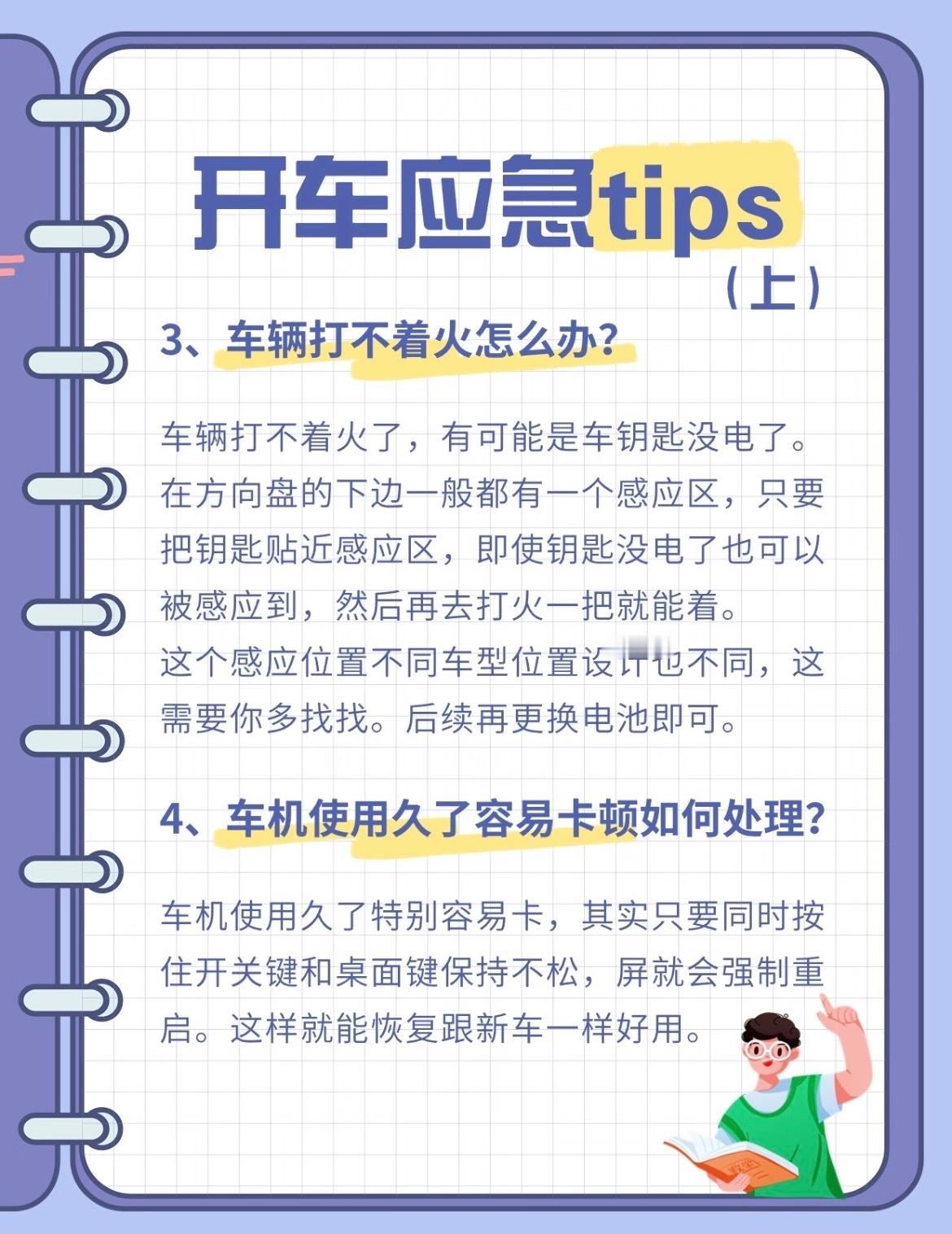 3️⃣ 钥匙没电也能点火!把钥匙贴紧方向盘下方的感应区(车型不同位置不同),感应到了再打火,亲测有效!