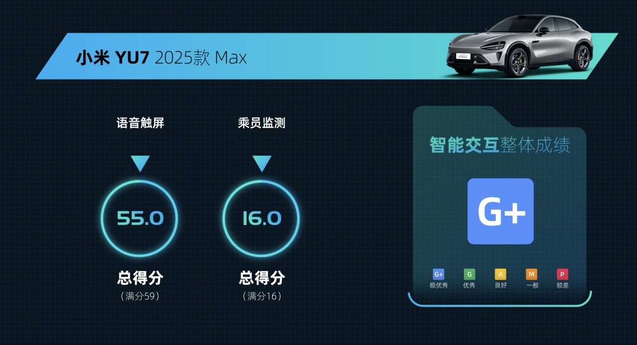 小米YU7直接拿下了IVISTA 四大项全G+,相当于是考了一个大满贯,智能化实力恐怖如斯啊。