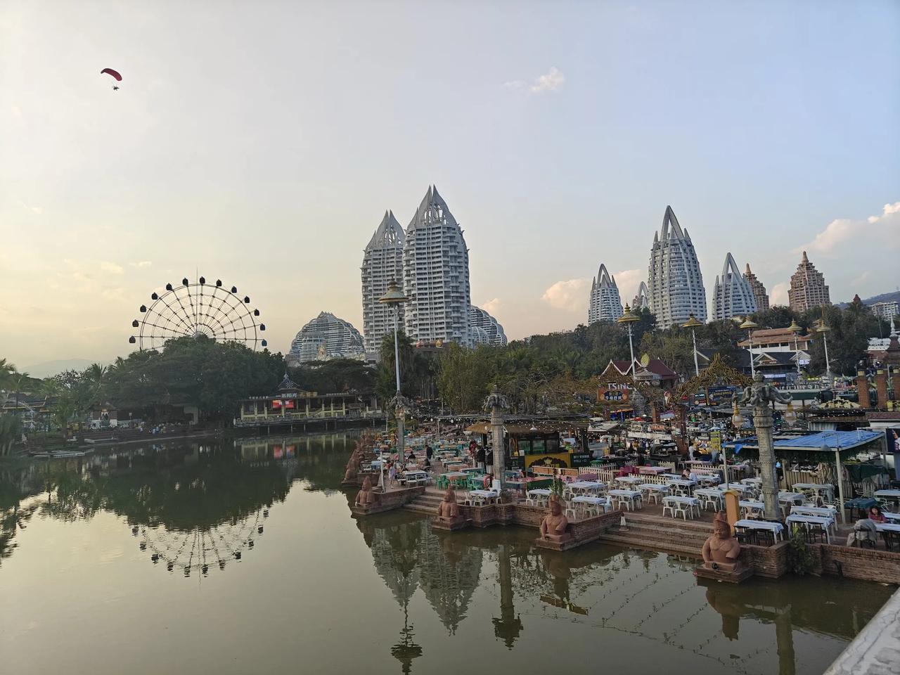 昨天晚上跟版纳亲人们一高兴,奋不顾身喝多了。上午看了一会儿《红楼梦》写了四千字拙文,晚辈就说,干脆出去溜达溜达。 先是开车去了般若塔,来版纳猫冬好几年,还是头一次过来,途径上个月京城常大哥请我们吃四川火锅的地方,也都是身边人提醒的。 我不记道。一说是吃火锅的地方,我一下子问,那个江西妹子理发店过没过去,我想去理发! 我答应过她只要我在版纳就坐公交车来你这理发。我有契约精神。 上次京城常大哥请我们吃火锅,我就想不能蓬头垢面去见大哥大嫂,找了一路理发店,发现一位瘦身材妹子站在理发店门口,旁边牌子上写,理发15块,干洗25。 我早些年在花园街干洗过,挺费事儿的。 我就进屋子,坐椅子上理了一个15块钱的。海林盛哥一个月退休金一万块钱,还去东北街理站发10块钱。 理发妹子让我猜猜她是什么地方人?我说你是江西人! 她非常吃惊,说我在这干了10年理发,多少人也没有猜对我是江西人。我要奖励你,给你做一个干洗。 我说我用的排除法,我当过兵,部队哪儿的人都有,就是没有江西人。 我接着说,妹子你不仅仅是江西人,你还是一个独身! 她说,你会算卦?我说,不会,你里面拉个帘,帘后有一个单人床,一个煤气罐,一个简单灶台,你在帘后做饭吃饭加上晚上睡觉。 理发妹说,我双腿让你说软了。 从般若塔出来,又来到告庄,星光夜市。 我是前天晚上跟哈尔滨忘年交大力来的星光夜市,他说,这地方洋洋她们年轻人来高兴,年龄大了,没啥意思。我才忽然算了一下,大力今年满50了,不知道他过不过50大寿,大办还是小办? 孩子们说,叔你找个地方坐着,搗会儿灯光全亮了,我们过来找你。