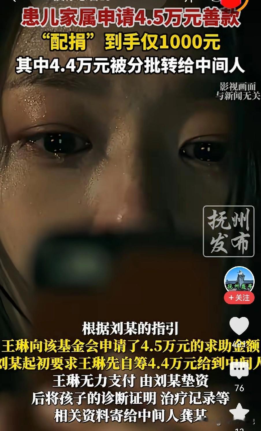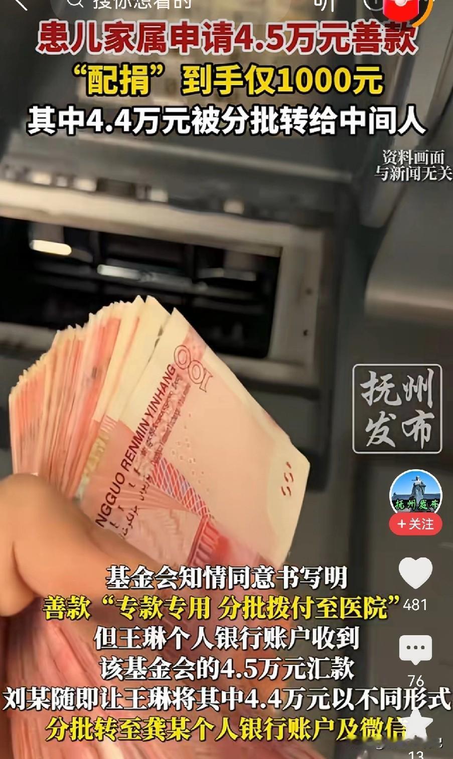 近日,浙江一个普通家庭正遭遇这样的绝境:11岁的女儿被确诊严重血液系统疾病,父母倾尽家产治病仍杯水车薪。经其他患儿家属介绍,他们得知一个“配捐”救助渠道(自称关联浙江省某公益相关组织),这份消息成了全家最后的希望。 整个申请过程由介绍人刘某全程经手,最终成功申请到4.5万元救助资金。可令人匪夷所思的是,申请阶段竟被要求先垫付4.4万元给中间人。本就负债累累的家庭无力承担,最终由刘某代为垫付,家属仅需提交孩子的治疗记录等资料给另一中间人。 更荒唐的是,4.5万元善款到账后,刘某立刻要求家属分批转账给办事中间人,最终落到这个患病女孩手中的仅剩1000元。而这1000元还需家属自付200多元购买发票,才能“走完所有流程”。 反观李亚鹏发起的嫣然天使基金,却走出了一条截然不同的公益之路。即便他个人陷入债务困境,也从未挪用过一分善款,始终坚守“善款只能用于患儿治疗”的底线。怪不得公众纷纷称赞李亚鹏是“真善人”,当公益救助领域出现“救命钱被层层盘剥”的乱象时,这份十七年如一日的坚守,才更显难能可贵。 (图片来自网络视频)