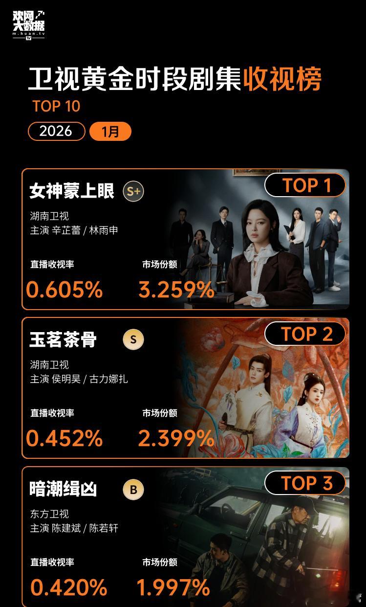 欢网——《女神蒙上眼》卫视剧集1月收视冠军!开播6天,成为断层第一!蕾子的小荧幕