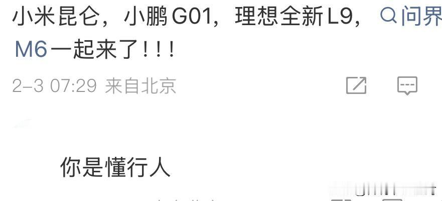 理想官宣新开30家门店。 其实也算是对前一段时间网传的“关闭100家门店”的辟谣吧。 刚刚公布的1月份销量,理想又回到新势力御三家“蔚小理”的头名,虽然只有一点点微弱的领先,但其实是韧性的展现。 i6甚至依旧受制于产能不足…… 按照之前流传出的内部会议记录,理想今年的一个重要目标就是“重回增程产品的领导地位”,这是非常关键的战略选择。 大电池增程的需求可能会比预期中的更旺盛。 据说本周末或下周初,多个品牌的多个热门车型就要正式亮相工信部了,蔚小理和小米都有,比如改款L9、G01、YU9等,可以期待一下他们将如何出牌…… 对头部新势力来说,今年应该是必须要卷出来的一年。