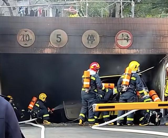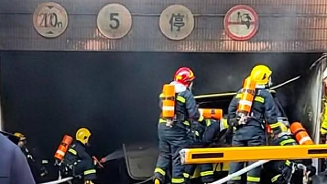 消防队员将火势扑灭后,继续在现场给起火车辆喷水降温,所幸事故未造成人员伤亡。