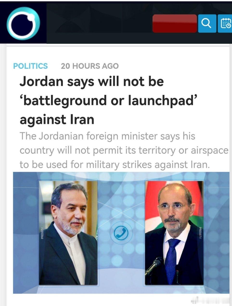 约旦表示不会成为对抗伊朗的“战场或跳板”