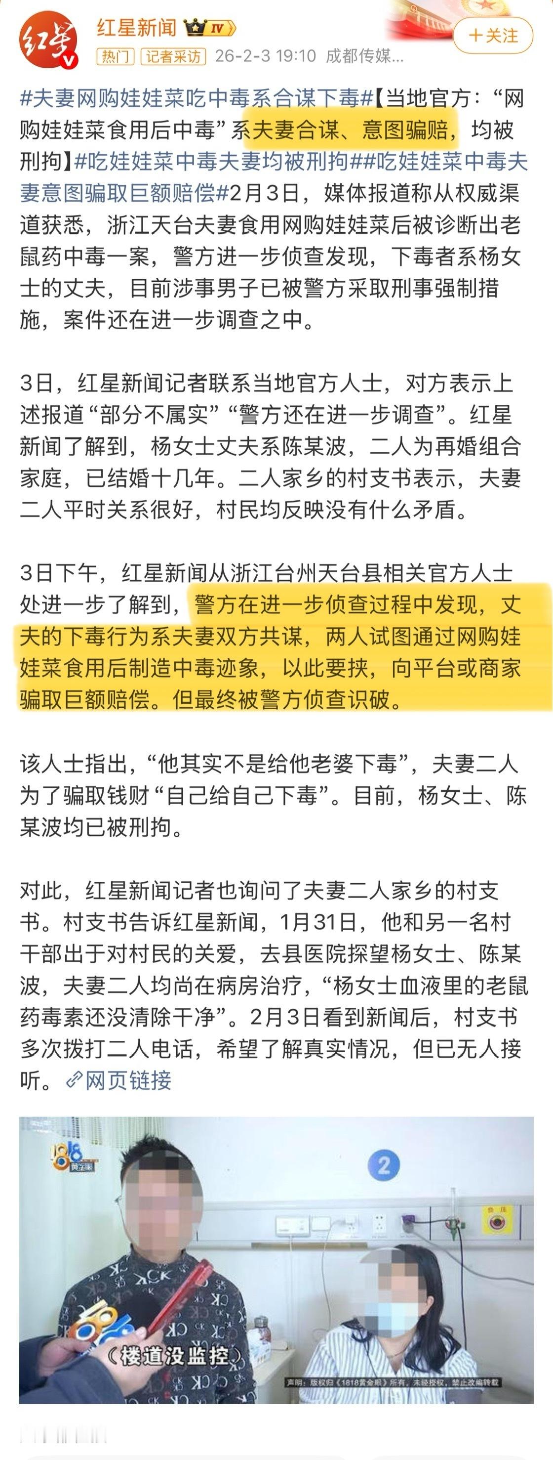 娃娃菜中毒这件事是反转再反转,终于迎来大结局。本以为是丈夫设计害妻,没想到真