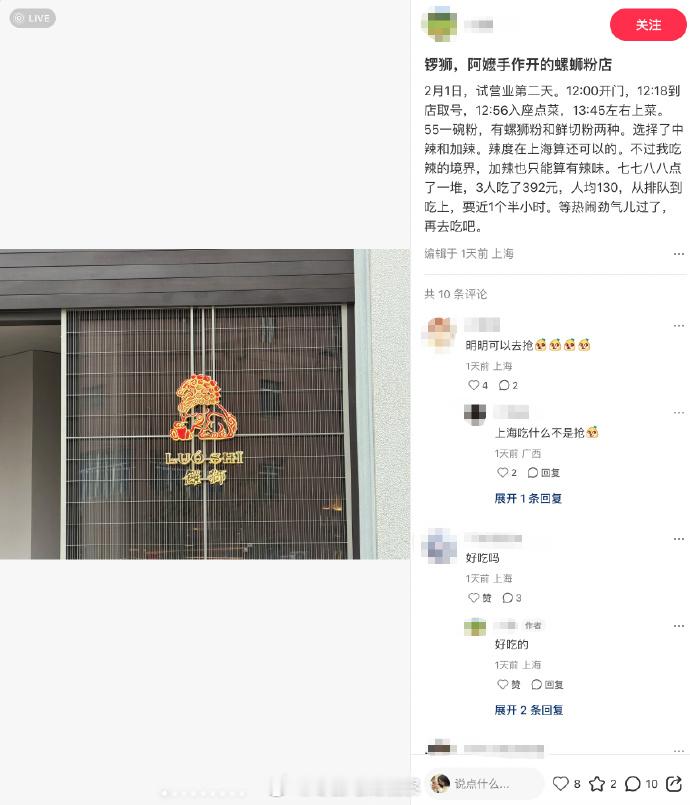 目前来看,对于阿嬷手作这家螺蛳粉首店,有人觉得贵,有人觉得味道值,还有人遗憾于店里为啥不搭配个奶茶柜台。据悉,目前该店内仅有招牌螺蛳粉以及部分小吃,正式营业菜单主打广西本土风味,菜单包括招牌螺蛳粉、吊龙炒螺蛳粉、锣狮红油卷粉,以及鸽腿、玉林牛巴、龙州烧烤等特色小食。